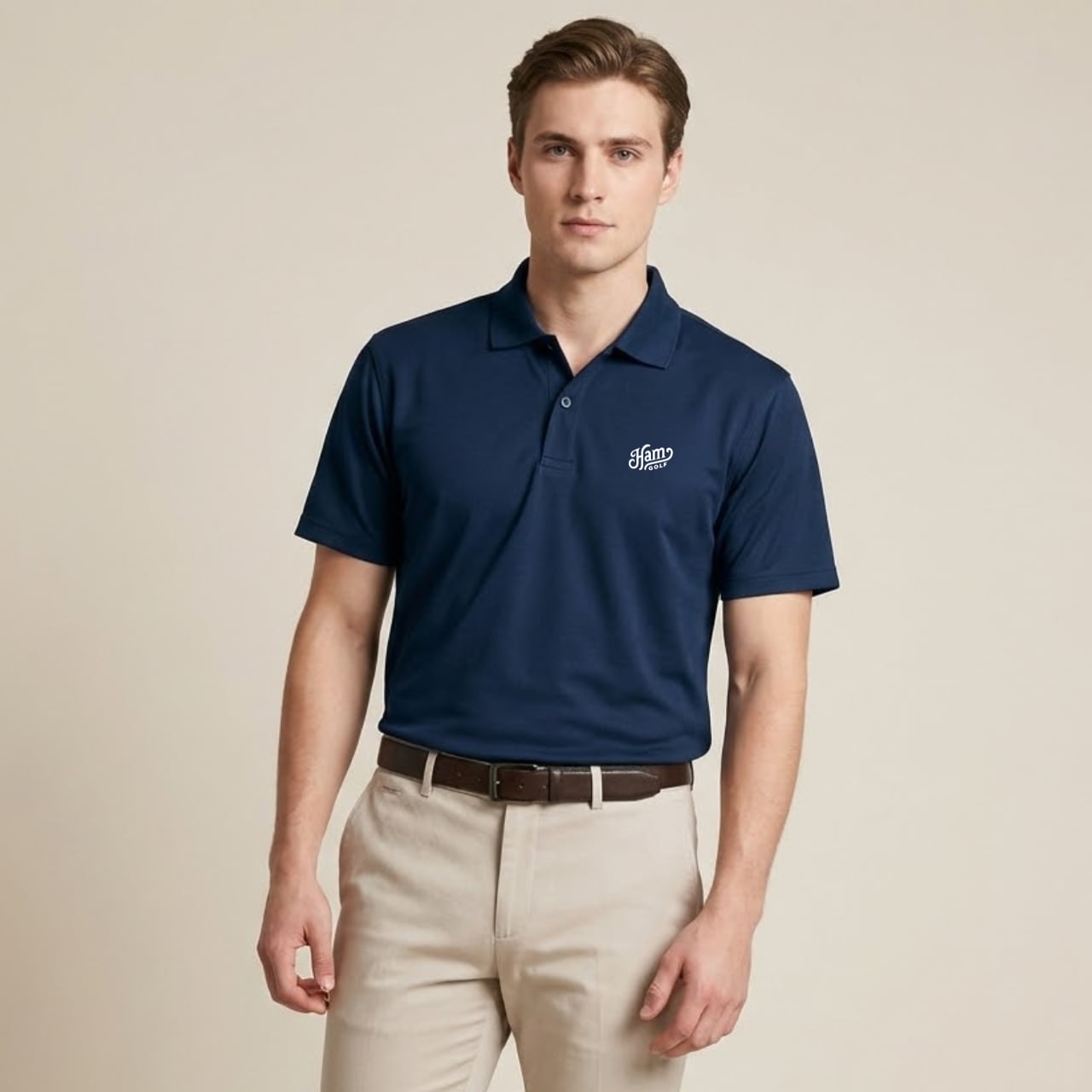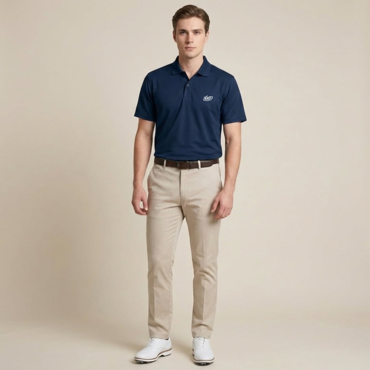 クラシックなロゴを胸に、背中には無駄を削ぎ落とした「HMG」の縦ロゴ。クリーンでありながら、芯のある存在感。 吸汗速乾・軽量な機能素材を採用し、プレー中の快適さはもちろん、ストリートにも馴染む万能さ。 どこでも自分らしく。そんなマインドをこの一枚に。 ※本商品はユニセックス仕様で、前合わせはボタンが右側になっております。 ■カラー/サイズ ・カラー:ネイビー ・サイズ:S、M、L、LL ■モデル/着用サイズ(写真から推定) 男性:180cm / Lサイズ 女性:170cm / Mサイズ ■寸法一覧(単位:cm) S 肩幅44 身幅47 着丈65 袖丈20 M 肩幅46 身幅50 着丈68 袖丈21 L 肩幅48 身幅53 着丈71 袖丈22 LL 肩幅50 身幅56 着丈74 袖丈23 ■素材 ポリエステル100% ■注意事項 ・商品画像は実際の商品と若干異なる場合がありますのでご注意ください。 ・商品お届けまでに約10営業日前後かかります。