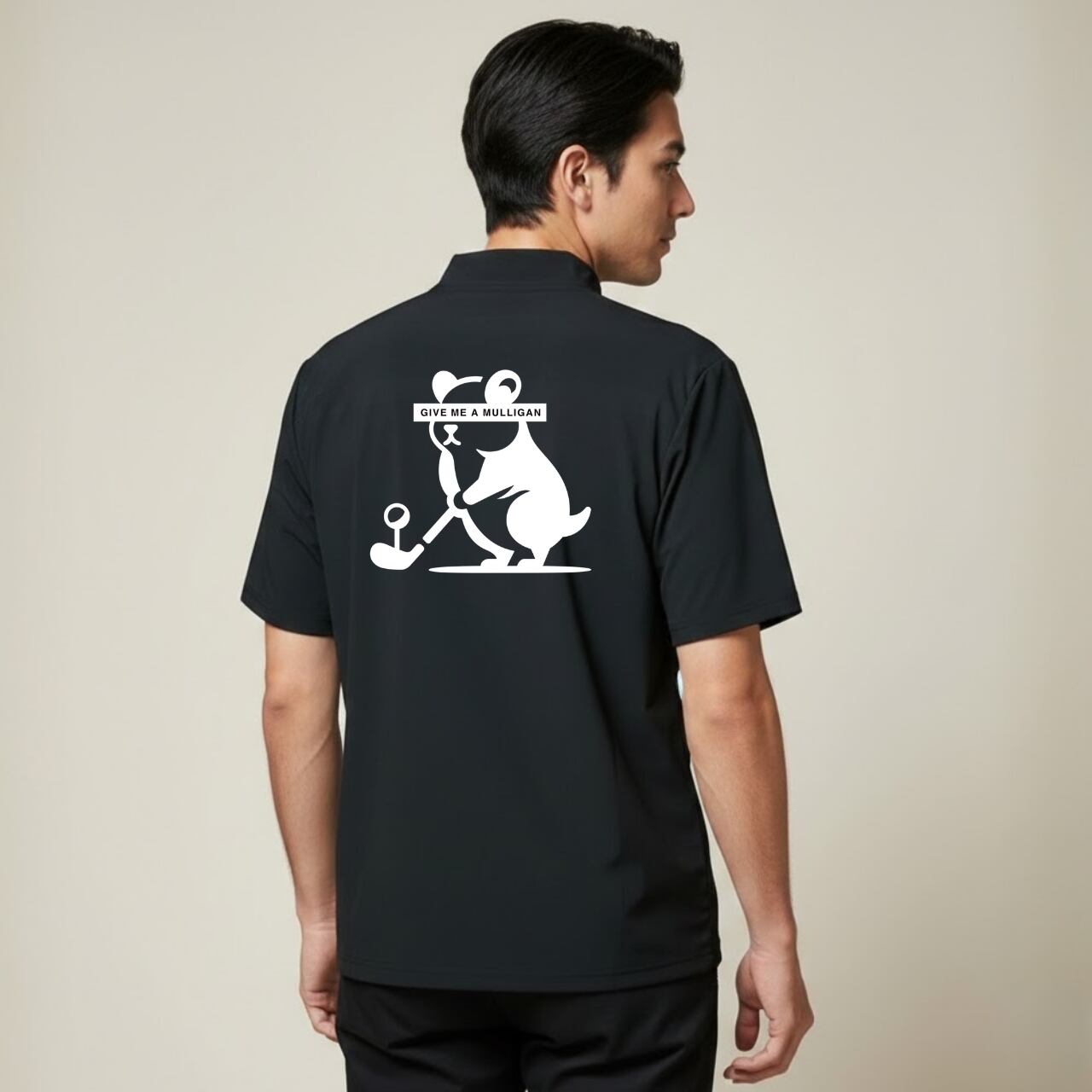 バックには〈Mr.Mulligan〉を大胆プリント。“GIVE ME A MULLIGAN”の目隠しテキストがストリートのエッセンスを添え、存在感を際立たせます。