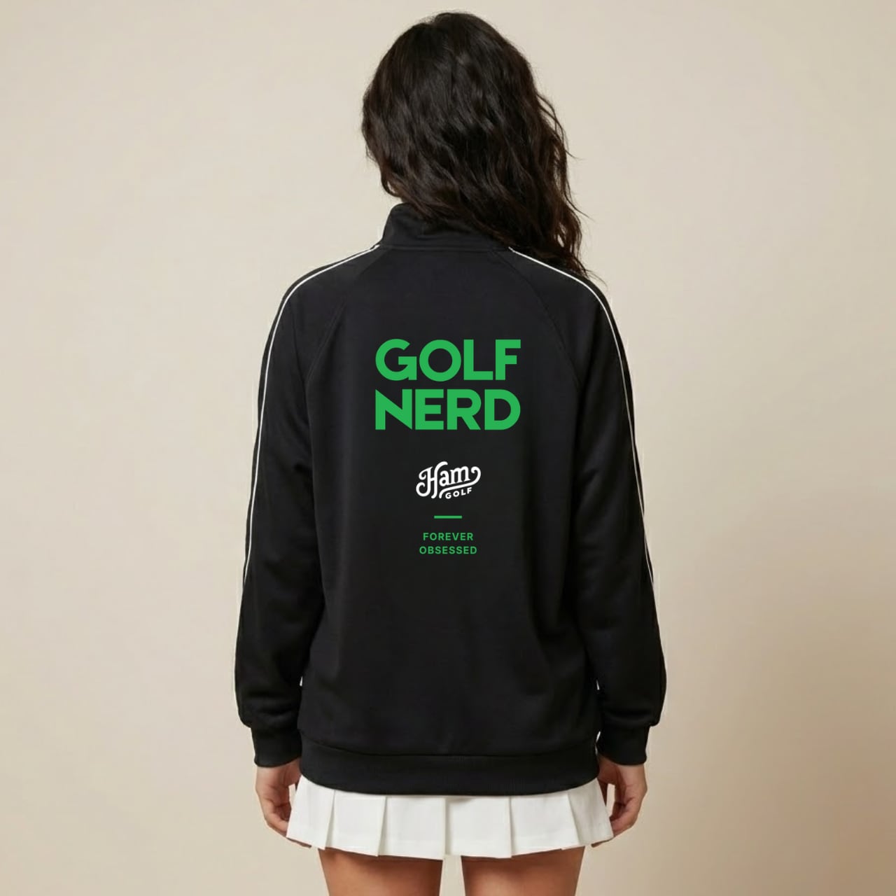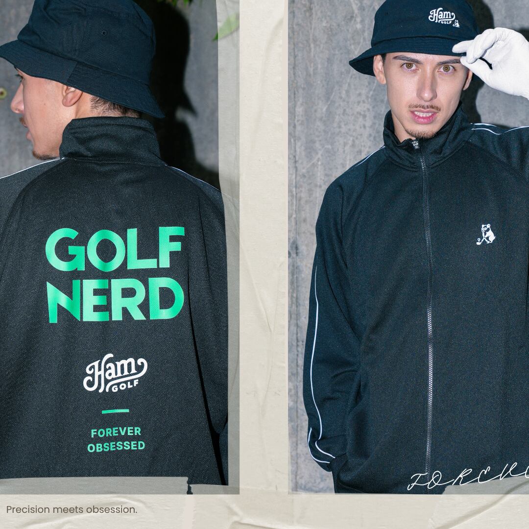 理論的な思考と遊び心を兼ね備えた現代的ゴルファーの感性を表現した新シリーズ 【GOLF NERD(ゴルフヲタク)】 その世界観を落とし込んだトラックジャケットが登場。 背面の「GOLF NERD」ロゴが静かに個性を主張し、胸元のメガネハムスター「グラント」のアイコンが洗練された印象を添えます。 吸汗速乾性に優れた素材を採用し、サラリとした肌触りが長時間続く快適な着心地。 ラウンドでもストリートでも、自分らしく着こなせる一枚。 ■カラー/サイズ ・カラー:ブラック ・サイズ:S、M、L、XL ■モデル/着用サイズ 男性:179cm / Lサイズ 女性:168cm / Mサイズ ■寸法一覧(単位:cm) S 着丈66 身幅56 裄丈80 M 着丈68 身幅58 裄丈82 L 着丈70 身幅60 裄丈84 XL 着丈72 身幅62 裄丈86 ■素材 本体:ポリエステル 100% リブ:ポリエステル93% ポリウレタン7% ■注意事項 ・商品画像は実際の商品と若干異なる場合があります。 ・お届けまでに約10営業日前後かかります。 理論派ゴルファーの感性を、スタイルで表現する。