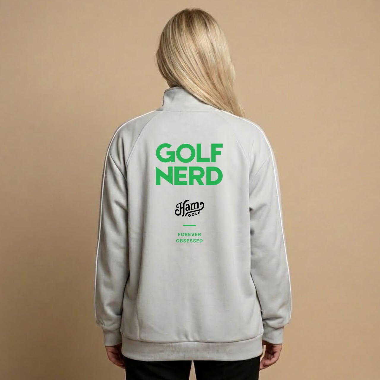 理論的な思考と遊び心を兼ね備えた現代的ゴルファーの感性を表現した新シリーズ 【GOLF NERD(ゴルフヲタク)】 その世界観を落とし込んだトラックジャケットが登場。 背面の「GOLF NERD」ロゴが静かに個性を主張し、胸元のメガネハムスター「グラント」のアイコンが洗練された印象を添えます。 吸汗速乾性に優れた素材を採用し、サラリとした肌触りが長時間続く快適な着心地。 ラウンドでもストリートでも、自分らしく着こなせる一枚。 ■カラー/サイズ ・カラー:ホワイト ・サイズ:S、M、L、XL ■モデル/着用サイズ 男性:178cm / Lサイズ 女性:162cm / Sサイズ ■寸法一覧(単位:cm) S 着丈66 身幅56 裄丈80 M 着丈68 身幅58 裄丈82 L 着丈70 身幅60 裄丈84 XL 着丈72 身幅62 裄丈86 ■素材 本体:ポリエステル 100% リブ:ポリエステル93% ポリウレタン7% ■注意事項 ・商品画像は実際の商品と若干異なる場合があります。 ・お届けまでに約10営業日前後かかります。 理論派ゴルファーの感性を、スタイルで表現する。