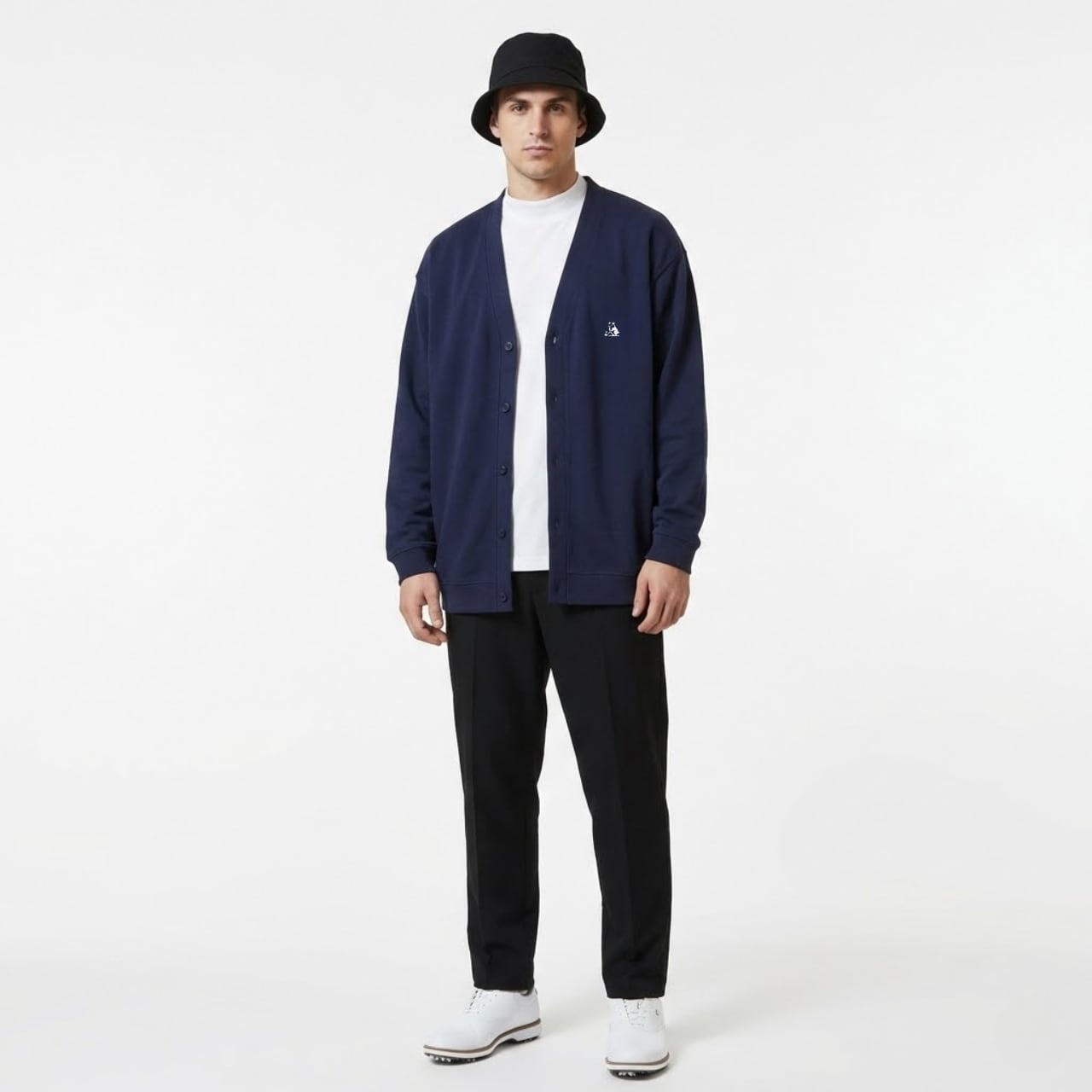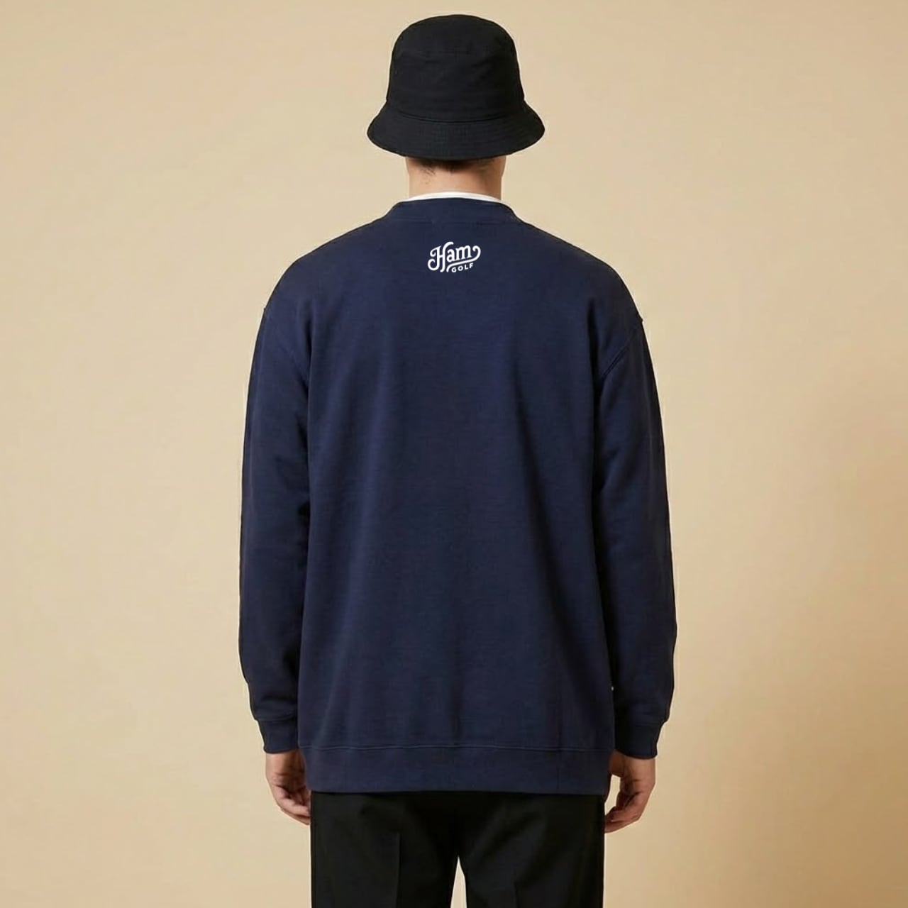 ゆったりとしたシルエットが魅力のコットンカーディガン。 胸元の【シモンズ】プリントがさりげない遊び心を添え、襟下のロゴがブランドらしいアクセントに。 10.0オンスの綿100%生地を使用し、ほどよい厚みと柔らかな肌ざわりを実現。 軽やかな着心地ながらも、ルーズフィットなシルエットが抜け感のあるスタイルを演出します。 ポロシャツやモックネックとのレイヤードはもちろん、ラウンド前後の羽織としても活躍。 シーンを問わず楽しめる、HamGOLFらしい万能な一着です。 ■カラー/サイズ ・カラー:ネイビー ・サイズ:M、L、XL ■モデル/着用サイズ 男性:184cm / XLサイズ 女性:170cm / Mサイズ ■寸法一覧(単位:cm) M 着丈70 身幅56 肩幅54 袖丈61 L 着丈73 身幅59 肩幅57 袖丈62 XL 着丈76 身幅62 肩幅60 袖丈63 ■素材 綿 100% オープンエンド糸 アッシュ:綿 98%、ポリエステル 2% オープンエンド糸 ■注意事項 ・商品画像は実際の商品と若干異なる場合があります。 ・お届けまでに約10営業日前後かかります。