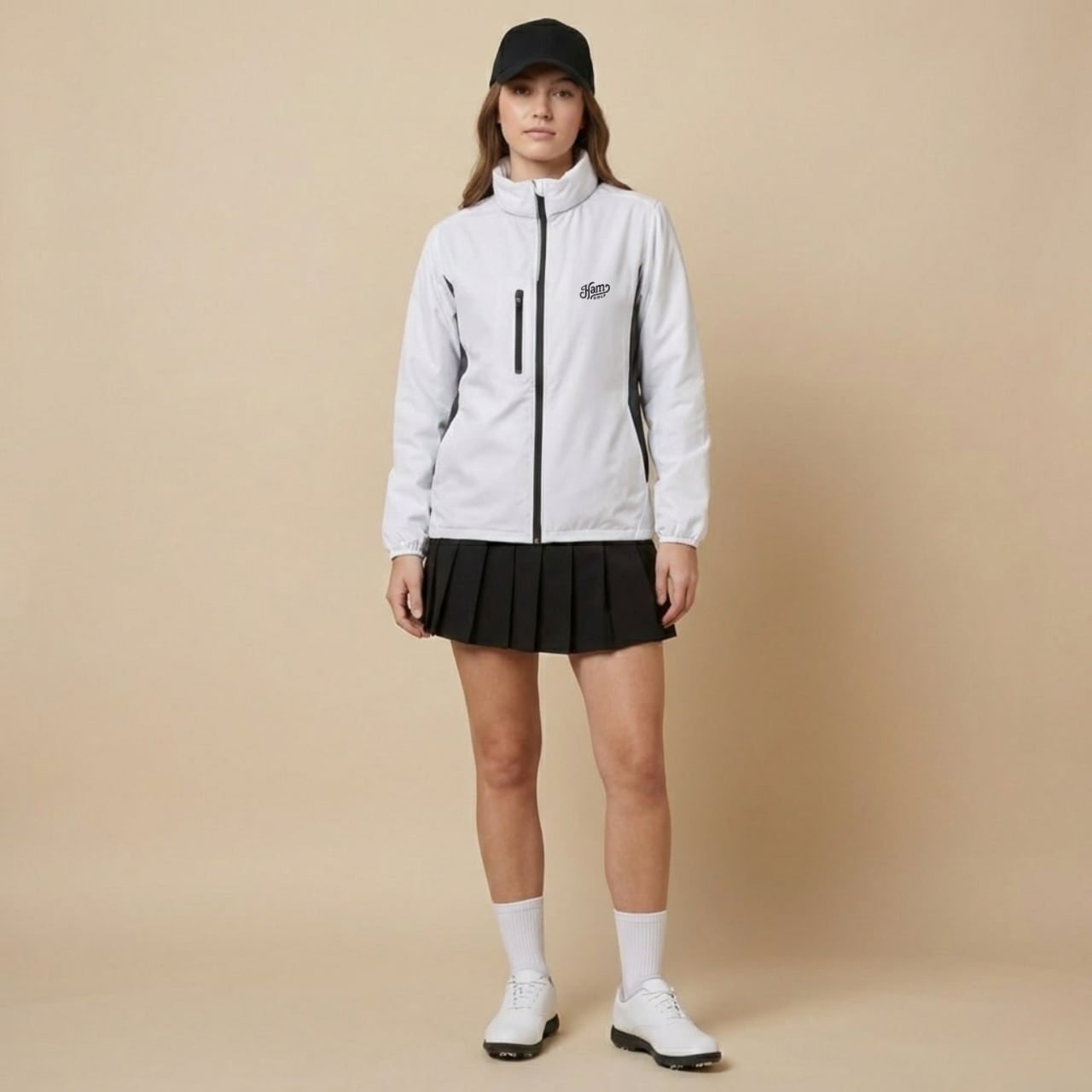 軽やかさと暖かさを兼ね備えた、フード付き裏フリースブルゾン。 背面には、【Mr.Mulligan】のユーモアあふれるグラフィックを大胆に配置。 フロントのロゴプリントが、シンプルながらもブランドらしい存在感を放ちます。 表地はマイクロリップストップ素材を採用し、軽量かつ撥水・防風に優れた仕様。 裏地はしっかりとしたフリース素材になっており、保温性を確保しながらも動きやすさを追求。さらに、襟元に収納可能な“フードイン仕様”を備え、天候の変化にもスマートに対応します。 ラウンド中や練習でも大活躍すること間違いなしの一着。 ■カラー/サイズ ・カラー:ホワイト ・サイズ:S、M、L、XL ■モデル/着用サイズ 男性:176cm / Lサイズ 女性:162cm / Sサイズ ■寸法一覧(単位:cm) S 着丈66 身幅53 肩幅45 袖丈63 M 着丈69 身幅56 肩幅47 袖丈64 L 着丈72 身幅59 肩幅49 袖丈64 XL 着丈75 身幅62 肩幅51 袖丈65 ■素材 表地:ポリエステル100% マイクロリップストップ (表面:フッ素系撥水 裏面:アクリルコーティング) 裏地(胴):ポリエステル100%(フリース) 裏地(袖):ポリエステル100%(タフタ) 保温材(袖):ポリエステル100% 脇下:ポリエステル100%(ラミネート加工 ストレッチリブ) ■注意事項 ・商品画像は実際の商品と若干異なる場合があります。 ・お届けまでに約10営業日前後かかります。