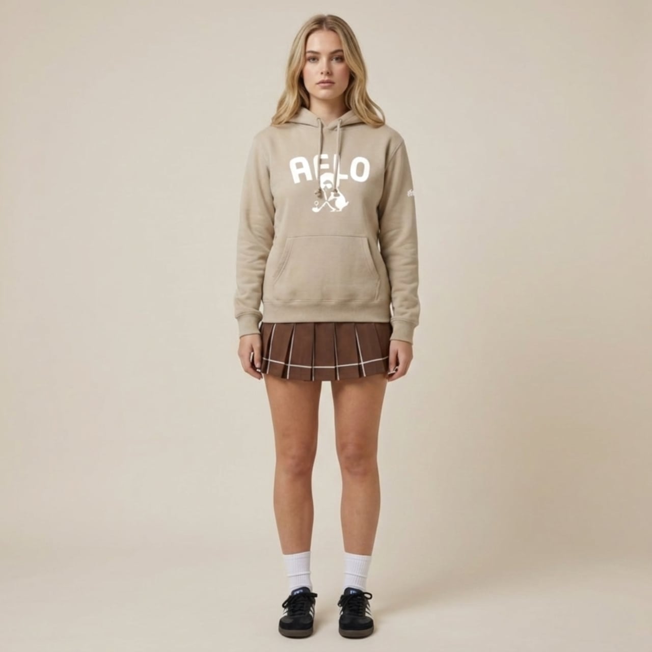 アフロヘアのキャラクター“ベン”を主役にした【AFLO】シリーズのパーカーが新登場。 シモンズの仲間の彼は、風を切るような軽やかさと、枠にとらわれない自由なプレースタイルが持ち味。 フロントの「AFLO」ロゴとベンのグラフィックが、HamGOLFが描く“遊び”と“規律”の共存を一着の中で体現します。 ストリートの余裕と、ゴルフ場の凛とした空気が交差する一枚。 厚みのある 10.0オンス生地 を採用し、ふっくらとした安心感のある着心地。 裏起毛仕様で保温性が高く、冬のラウンドでも街中でも快適に過ごせます。 柔らかな肌ざわりとハリのある質感を両立した、オールシーズンで活躍する万能フーディ。 ■カラー/サイズ ・カラー:サンドベージュ ・サイズ:S、M、L、XL ■モデル/着用サイズ 男性:178cm / Lサイズ 女性:162cm / Sサイズ ■寸法一覧(単位:cm) S 肩幅44 身幅52 身丈63 袖丈57 M 肩幅48 身幅55 身丈67 袖丈60 L 肩幅52 身幅58 身丈71 袖丈61 XL 肩幅55 身幅63 身丈76 袖丈62 ■素材 綿52% ポリエステル48% 10oz(表面:綿100%) ■注意事項 ・商品画像は実際の商品と若干異なる場合がありますのでご注意ください。 ・お届けまでに約10営業日前後かかります。