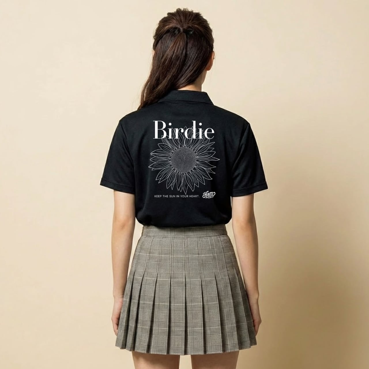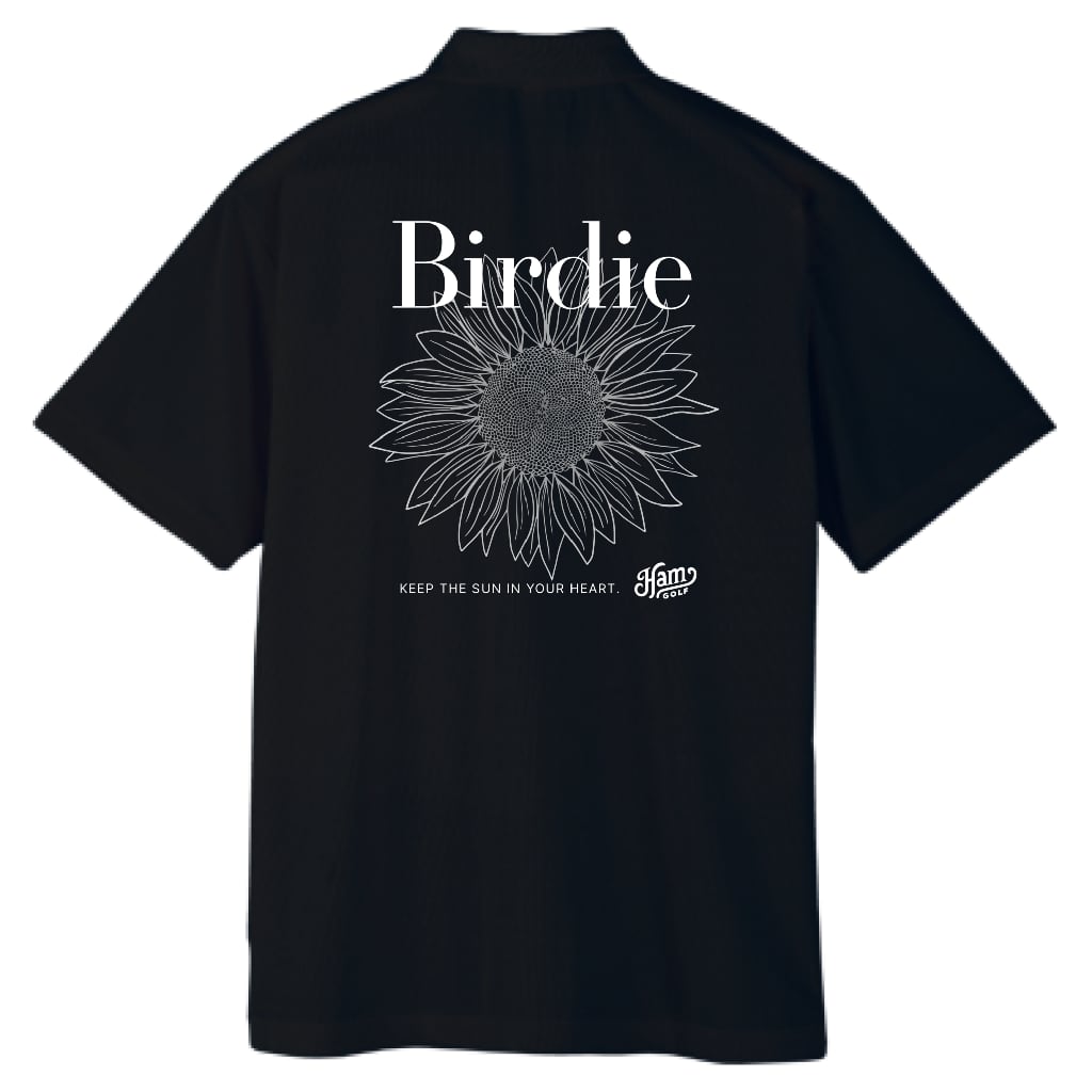 大好評の【BIRDIE SUNFLOWER】シリーズに、待望のポロシャツが登場。 最大の特徴は、背面に描かれた大輪のヒマワリと「Birdie」のグラフィック。 “KEEP THE SUN IN YOUR HEART.” ― そのメッセージの通り、 スコアが良い時も悪い時も、常に太陽のように明るく前向きでいたい。 そんなポジティブなマインドを持つゴルファーに寄り添う一枚です。 フロントの左胸にはお馴染みのシモンズロゴを配置。 前から見るとシックで落ち着いた印象、後ろ姿では大胆な個性を演出する、 HamGOLFらしい遊び心の効いたギャップも魅力です。 夏のラウンドでも爽やかに着こなせる、デザインと想いが詰まったアイテムです。 ※本商品はユニセックス仕様で、前合わせはボタンが右側になっております。 ■カラー/サイズ ・カラー:ブラック ・サイズ:S、M、L、LL ■モデル/着用サイズ 男性:176cm / Lサイズ 女性:169cm / Mサイズ ■寸法一覧(単位:cm) S 肩幅44 身幅47 着丈65 袖丈20 M 肩幅46 身幅50 着丈68 袖丈21 L 肩幅48 身幅53 着丈71 袖丈22 LL 肩幅50 身幅56 着丈74 袖丈23 ■素材 ポリエステル100% ■注意事項 ・商品画像は実際の商品と若干異なる場合がありますのでご注意ください。 ・商品お届けまでに約10営業日前後かかります。