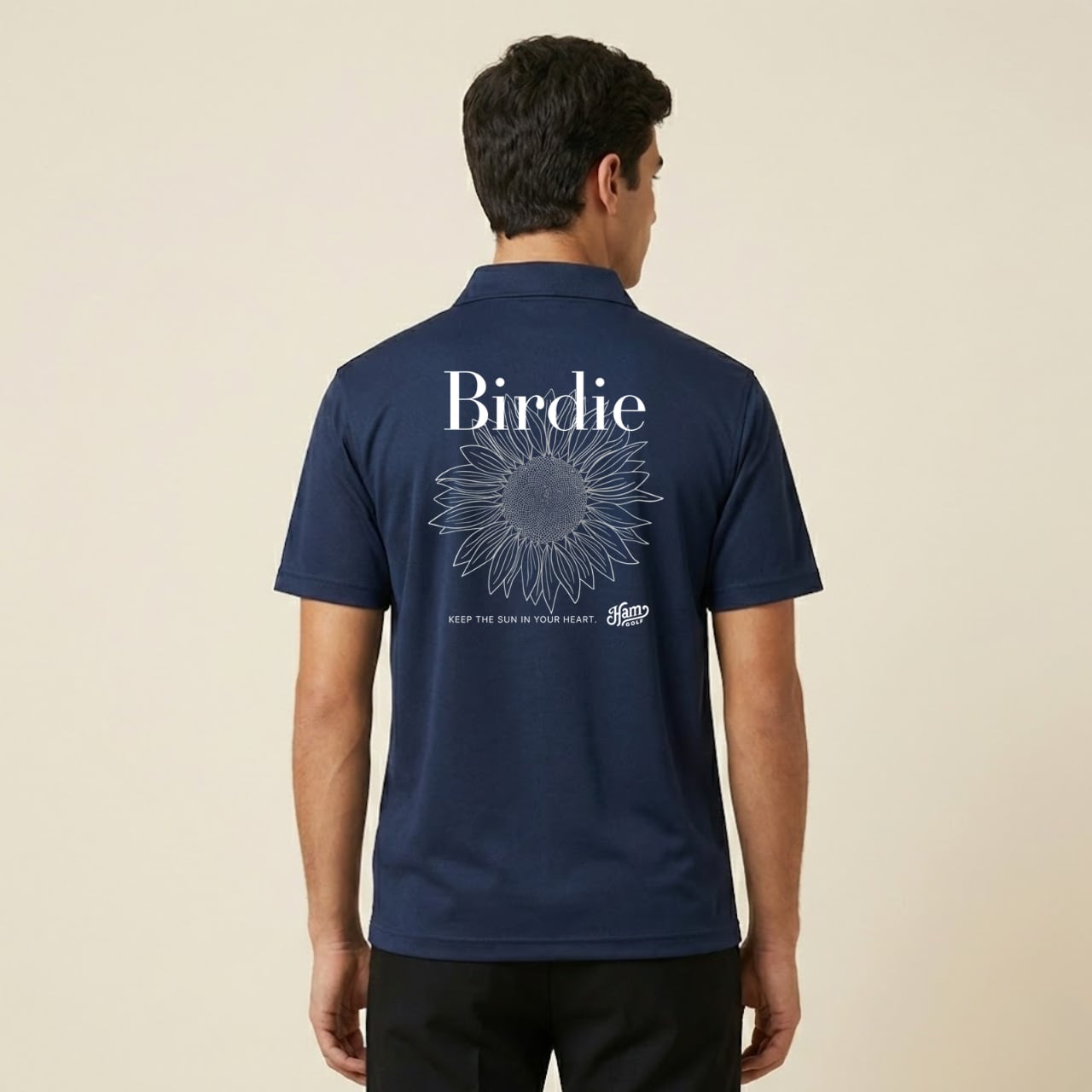 大好評の【BIRDIE SUNFLOWER】シリーズに、待望のポロシャツが登場。 最大の特徴は、背面に描かれた大輪のヒマワリと「Birdie」のグラフィック。 “KEEP THE SUN IN YOUR HEART.” ― そのメッセージの通り、 スコアが良い時も悪い時も、常に太陽のように明るく前向きでいたい。 そんなポジティブなマインドを持つゴルファーに寄り添う一枚です。 フロントの左胸にはお馴染みのシモンズロゴを配置。 前から見るとシックで落ち着いた印象、後ろ姿では大胆な個性を演出する、 HamGOLFらしい遊び心の効いたギャップも魅力です。 夏のラウンドでも爽やかに着こなせる、デザインと想いが詰まったアイテムです。 ※本商品はユニセックス仕様で、前合わせはボタンが右側になっております。 ■カラー/サイズ ・カラー:メトロブルー ・サイズ:S、M、L、LL ■モデル/着用サイズ 男性:183cm / XLサイズ 女性:170cm / Mサイズ ■寸法一覧(単位:cm) S 肩幅44 身幅47 着丈65 袖丈20 M 肩幅46 身幅50 着丈68 袖丈21 L 肩幅48 身幅53 着丈71 袖丈22 LL 肩幅50 身幅56 着丈74 袖丈23 ■素材 ポリエステル100% ■注意事項 ・商品画像は実際の商品と若干異なる場合がありますのでご注意ください。 ・商品お届けまでに約10営業日前後かかります。