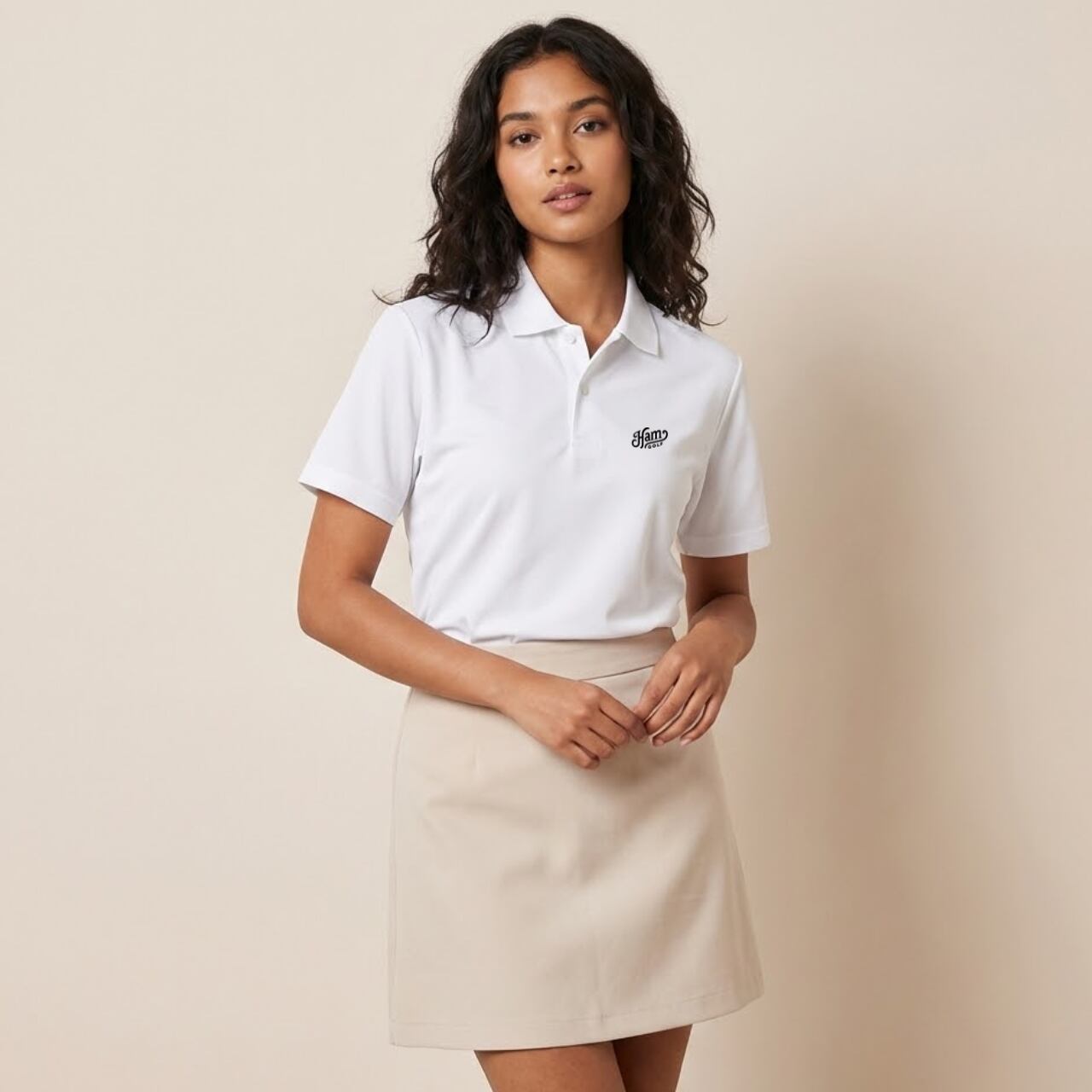 HamGOLFの新シリーズ【GOLF NERD(ゴルフヲタク)】から、待望のポロシャツが登場。 「理論的な思考と遊び心」をコンセプトに、現代的なゴルファーの感性を表現した一枚です。 胸元には、メガネをかけたハムスター「グラント」のアイコンを配置し、洗練された大人の可愛らしさをプラス。対照的に、背中には大胆な「GOLF NERD」のタイポグラフィをあしらい、静かながらも確かな個性を主張します。 素材には吸汗速乾性に優れたポリエステル100%を採用。汗ばむ季節のラウンドでもサラリとした肌触りをキープし、プレーに集中できる快適な着心地を実現しました。 タックインしてクラシカルに、アウトしてストリート風に。 ゴルフを深く愛する「NERD」なあなたにこそ着てほしい、こだわりの一着です。 ※本商品はユニセックス仕様で、前合わせはボタンが右側になっております。 ■カラー/サイズ ・カラー:ホワイト ・サイズ:S、M、L、LL ■寸法一覧(単位:cm) S 肩幅44 身幅47 着丈65 袖丈20 M 肩幅46 身幅50 着丈68 袖丈21 L 肩幅48 身幅53 着丈71 袖丈22 LL 肩幅50 身幅56 着丈74 袖丈23 ■素材 ポリエステル100% ■注意事項 ・商品画像は実際の商品と若干異なる場合がありますのでご注意ください。 ・商品お届けまでに約10営業日前後かかります。
