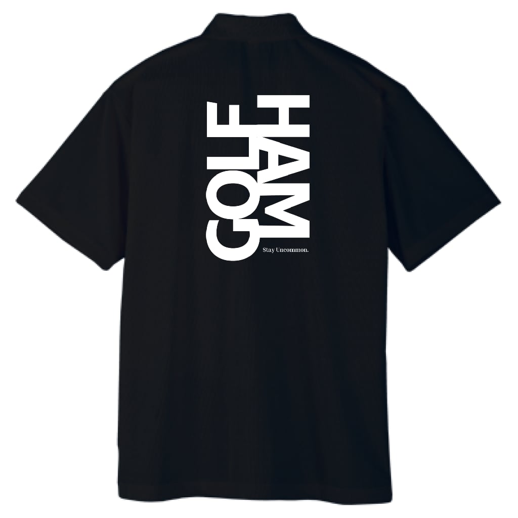 待望の新作ポロシャツ「THE STACK POLO」が登場。 左胸のワンポイントロゴでシンプルかつ上品にまとめ、どんなボトムスとも相性の良い仕上がりに。 一転して背中には、「HAMGOLF」のタイポグラフィをブロック状に積み上げた、インパクト抜群のビッグロゴを配置。スイングのフィニッシュや、パッティングのラインを読む背中で、確かな存在感を放ちます。 ゴルフ場でのプレーはもちろん、練習場やタウンユースでもスマートに着こなせる、この夏のマストバイアイテムです。 ※本商品はユニセックス仕様で、前合わせはボタンが右側になっております。 ■カラー/サイズ ・カラー:ブラック ・サイズ:S、M、L、LL ■モデル/着用サイズ 男性:182cm / LLサイズ 女性:170cm / Mサイズ ■寸法一覧(単位:cm) S 肩幅44 身幅47 着丈65 袖丈20 M 肩幅46 身幅50 着丈68 袖丈21 L 肩幅48 身幅53 着丈71 袖丈22 LL 肩幅50 身幅56 着丈74 袖丈23 ■素材 ポリエステル100% ■注意事項 ・商品画像は実際の商品と若干異なる場合がありますのでご注意ください。 ・商品お届けまでに約10営業日前後かかります。
