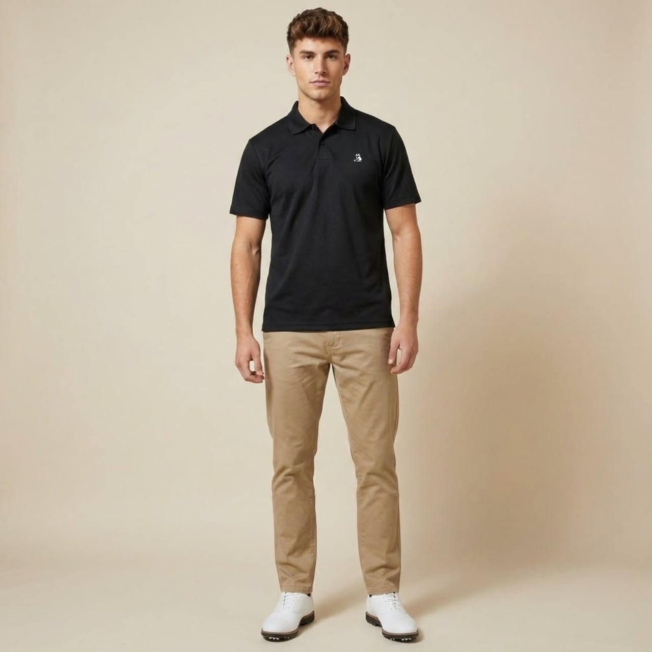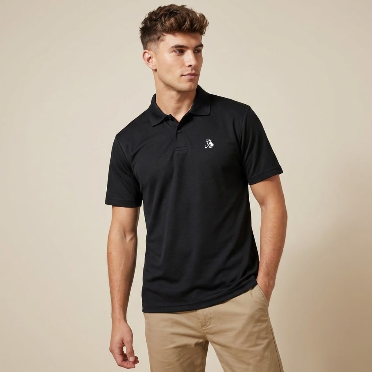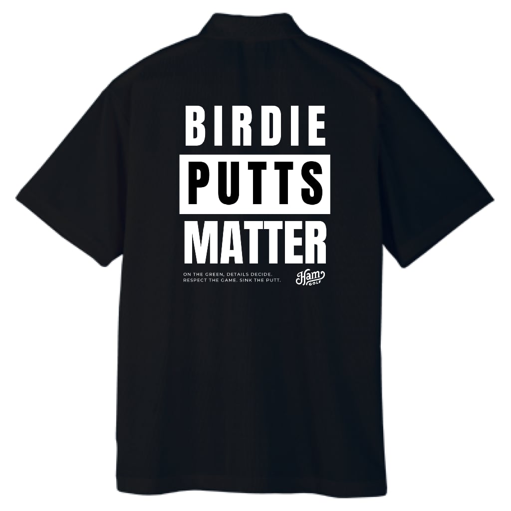 ナイスオンした時のワクワクや、真剣にラインを読む時間、 そしてパットが決まった瞬間のハイタッチ。 ゴルフの楽しい瞬間を、このポロシャツと共にもっと特別なものに。 背中にプリントされた“BIRDIE PUTTS MATTER”のメッセージは、 1打の重みをユーモラスに語り、胸元の愛らしいハムスターが、 張り詰めた緊張感をふわりと和ませてくれる一枚。 吸汗速乾性に優れたポリエステル素材を採用し、暑い日でもさらりと快適な着心地。 真剣なラウンドの日も、まったり仲間との練習場でも、心地よく馴染むアイテムです。 ※本商品はユニセックス仕様で、前合わせはボタンが右側になっております。 ■カラー/サイズ ・カラー:ブラック ・サイズ:S、M、L、LL ■モデル/着用サイズ 男性:182cm / LLサイズ 女性:163cm / Sサイズ ■寸法一覧(単位:cm) S 肩幅44 身幅47 着丈65 袖丈20 M 肩幅46 身幅50 着丈68 袖丈21 L 肩幅48 身幅53 着丈71 袖丈22 LL 肩幅50 身幅56 着丈74 袖丈23 ■素材 ポリエステル100% ■注意事項 ・商品画像は実際の商品と若干異なる場合がありますのでご注意ください。 ・商品お届けまでに約10営業日前後かかります。