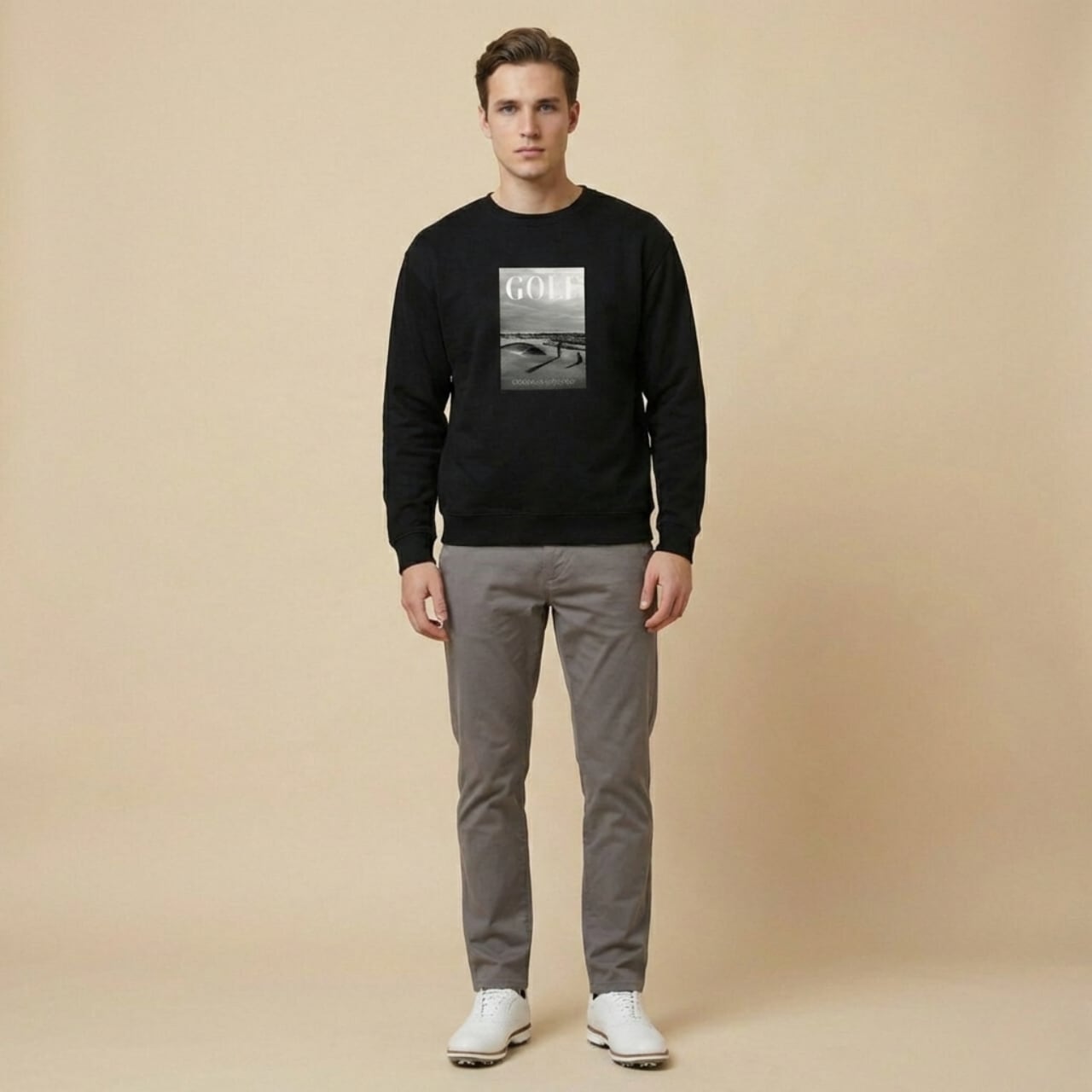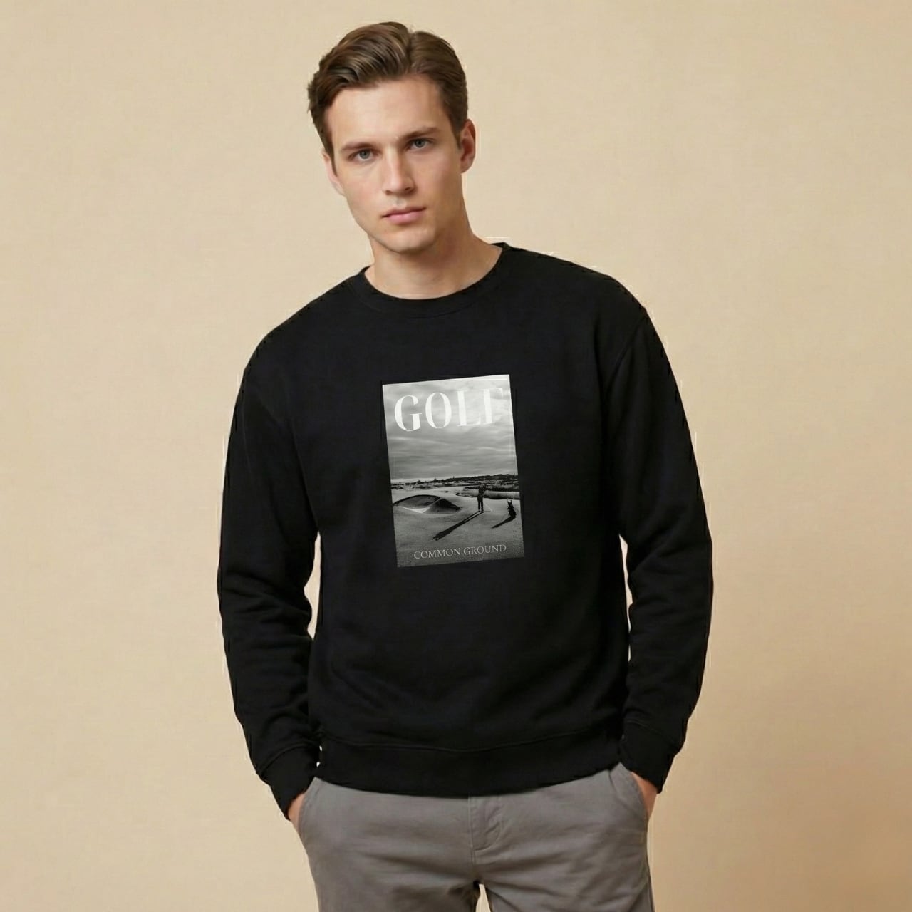 シックなモノクロフォトが目を惹く新作スウェット「COMMON GROUND SWEAT」が登場しました。 フロントには、ゴルフコースの静寂と美しさを切り取ったモノクロフォトを大胆にプリント。クラシカルなフォントで配置された「GOLF」と「COMMON GROUND」の文字が、シックで大人な雰囲気を演出します。襟下にはワンポイントでブランドロゴを配置し、後ろ姿も抜かりない仕上がりです。 秋・冬・春とロングシーズン活躍できるよう、厚すぎず薄すぎない10oz(オンス)の生地を厳選しました。アウターの下に着てもゴワつかず、すっきりと着用いただけます。 また、裏地には「パイル地」を使用。吸水性が高く、汗をかいた時も肌に張り付かずベタつかないため、練習中の着用にも最適です。 ラウンドや練習場への行き帰りはもちろん、デニムやチノパンと合わせたタウンユースとしても映える、ゴルフライフと日常をシームレスに繋ぐ一枚です。 ■カラー/サイズ ・カラー:ブラック ・サイズ:S、M、L、XL ■モデル/着用サイズ 男性:181cm / XLサイズ 女性:171cm / Mサイズ ■寸法一覧(単位:cm) S 肩幅44 身幅52 身丈63 袖丈57 M 肩幅48 身幅55 身丈67 袖丈59 L 肩幅52 身幅58 身丈71 袖丈60 XL 肩幅55 身幅63 身丈76 袖丈61 ■素材 綿 100% 裏パイル ■注意事項 ・商品画像は実際の商品と若干異なる場合がありますのでご注意ください。 ・商品お届けまでに約10営業日前後かかります。