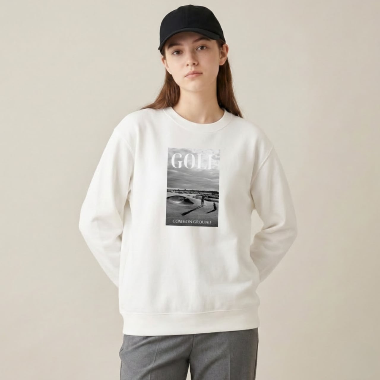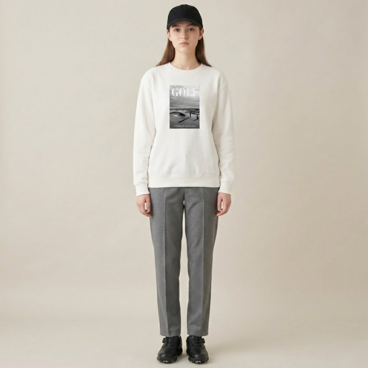 シックなモノクロフォトが目を惹く新作スウェット「COMMON GROUND SWEAT」が登場しました。 フロントには、ゴルフコースの静寂と美しさを切り取ったモノクロフォトを大胆にプリント。クラシカルなフォントで配置された「GOLF」と「COMMON GROUND」の文字が、シックで大人な雰囲気を演出します。襟下にはワンポイントでブランドロゴを配置し、後ろ姿も抜かりない仕上がりです。 秋・冬・春とロングシーズン活躍できるよう、厚すぎず薄すぎない10oz(オンス)の生地を厳選しました。アウターの下に着てもゴワつかず、すっきりと着用いただけます。 また、裏地には「パイル地」を使用。吸水性が高く、汗をかいた時も肌に張り付かずベタつかないため、練習中の着用にも最適です。 ラウンドや練習場への行き帰りはもちろん、デニムやチノパンと合わせたタウンユースとしても映える、ゴルフライフと日常をシームレスに繋ぐ一枚です。 ■カラー/サイズ ・カラー:ホワイト ・サイズ:S、M、L、XL ■モデル/着用サイズ 男性:184cm / XLサイズ 女性:170cm / Mサイズ ■寸法一覧(単位:cm) S 肩幅44 身幅52 身丈63 袖丈57 M 肩幅48 身幅55 身丈67 袖丈59 L 肩幅52 身幅58 身丈71 袖丈60 XL 肩幅55 身幅63 身丈76 袖丈61 ■素材 綿 100% 裏パイル ■注意事項 ・商品画像は実際の商品と若干異なる場合がありますのでご注意ください。 ・商品お届けまでに約10営業日前後かかります。