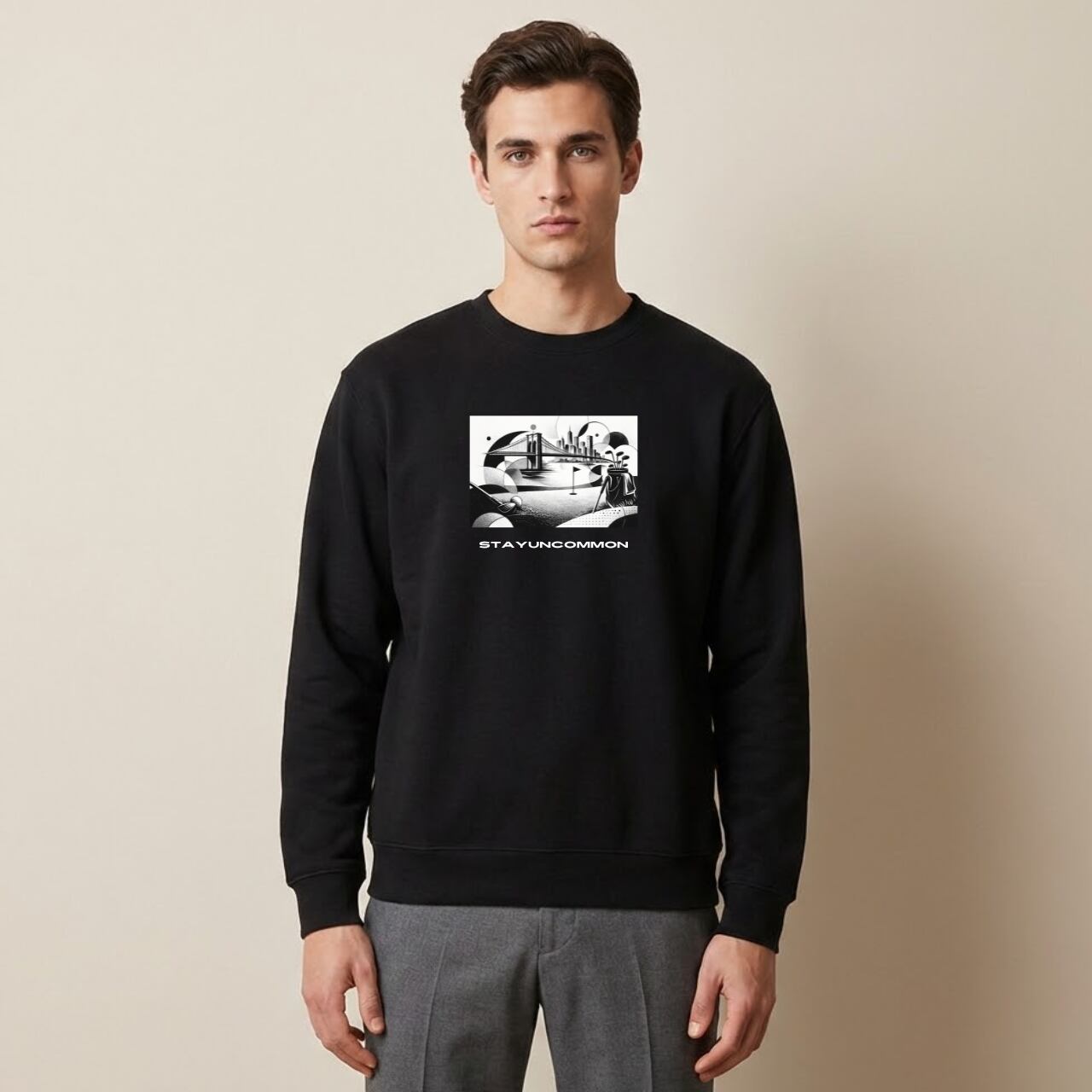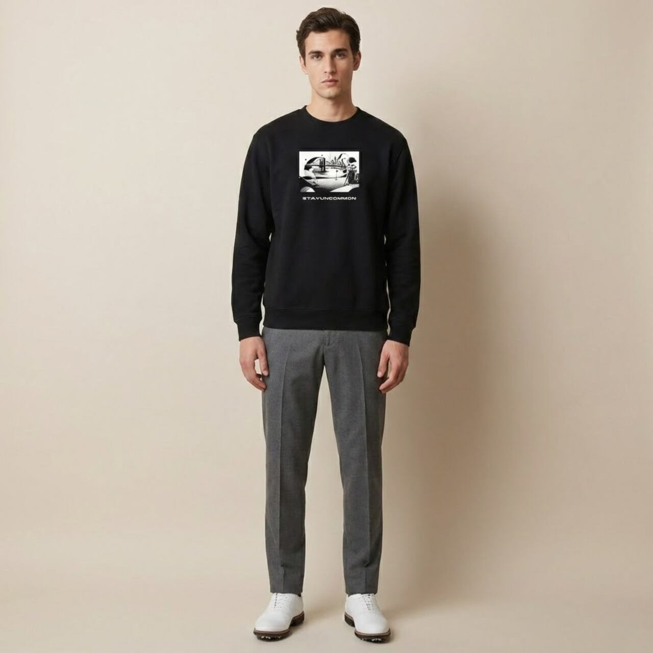 ゴルフと日常の架け橋に。「BRIDGE FAIRWAY SWEAT」が登場。 フロントには、フェアウェイにかかる「橋(BRIDGE)」をモチーフにしたグラフィックをモノトーンで配置。ゴルフ場でのプレーシーンと、日常のライフスタイルを繋ぐというメッセージを込めました。襟下部分にはワンポイントでブランドロゴを配置し、シンプルながらもバックスタイルに確かな存在感を与えます。 秋・冬・春とロングシーズン活躍できるよう、ふっくらとした肌触りが魅力の10.0オンス生地を採用。また、裏地には「パイル地」を使用し、吸水性と伸縮性に優れているため、練習場やラウンドでの動きやすさはもちろん、リラックスタイムにも最適です。 ゴルフを愛する全てのプレイヤーの日常に寄り添う、こだわりの一枚です。 ■カラー/サイズ ・カラー:ブラック ・サイズ:S、M、L、XL ■モデル/着用サイズ 男性:182cm / XLサイズ 女性:170cm / Mサイズ ■寸法一覧(単位:cm) S 肩幅44 身幅52 身丈63 袖丈57 M 肩幅48 身幅55 身丈67 袖丈59 L 肩幅52 身幅58 身丈71 袖丈60 XL 肩幅55 身幅63 身丈76 袖丈61 ■素材 綿 100% 裏パイル ■注意事項 ・商品画像は実際の商品と若干異なる場合がありますのでご注意ください。 ・商品お届けまでに約10営業日前後かかります。