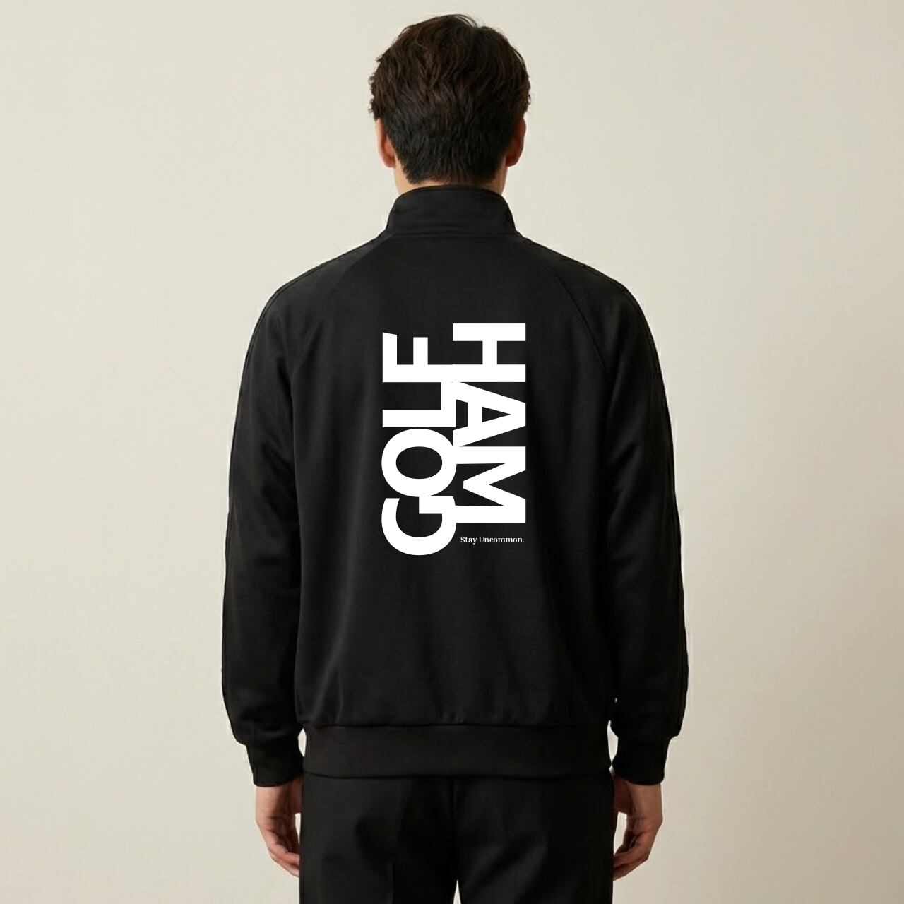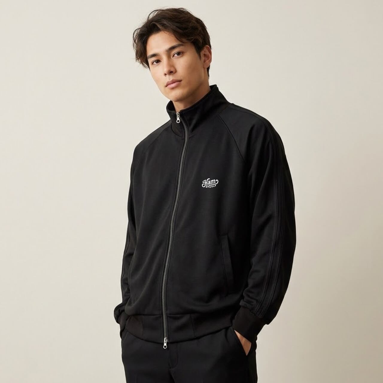 「THE STACK」シリーズに、待望のトラックジャケットがラインナップ。 左胸にはワンポイントロゴのみでシンプルかつ上品に仕上げ、洗練されたスポーティさを演出。一転して背面には、「HAMGOLF」のタイポグラフィをブロック状に積み上げた、シリーズ象徴のビッグロゴを大胆に配置しました。 フェアウェイを歩く後ろ姿や、スイングのフィニッシュで、確かな存在感を放つ一着です。 なめらかな肌触りと適度な伸縮性が魅力の7.0oz(オンス)スムース素材を採用。 肩の動きを妨げないラグランスリーブ仕様により、スムーズなスイングを実現します。また、ダブルファスナー仕様のため、プレー中のシルエット調整や、体温調節もスムーズに行えます。 ゴルフ場でのプレーはもちろん、練習場への行き帰りやタウンユースまで、シーズンを問わずスマートに着こなせるマストバイアイテムです。 ■カラー/サイズ ・カラー:ブラック ・サイズ:S、M、L、LL ■寸法一覧(単位:cm) S 身丈60 身幅52 裄丈80 M 身丈64 身幅57 裄丈84 L 身丈68 身幅62 裄丈87 LL 身丈71 身幅68 裄丈90 ■素材 ポリエステル 100% スムース ※ファスナーはダブルスライダーです。 ■注意事項 ・商品画像は実際の商品と若干異なる場合がありますのでご注意ください。 ・商品お届けまでに約10営業日前後かかります。