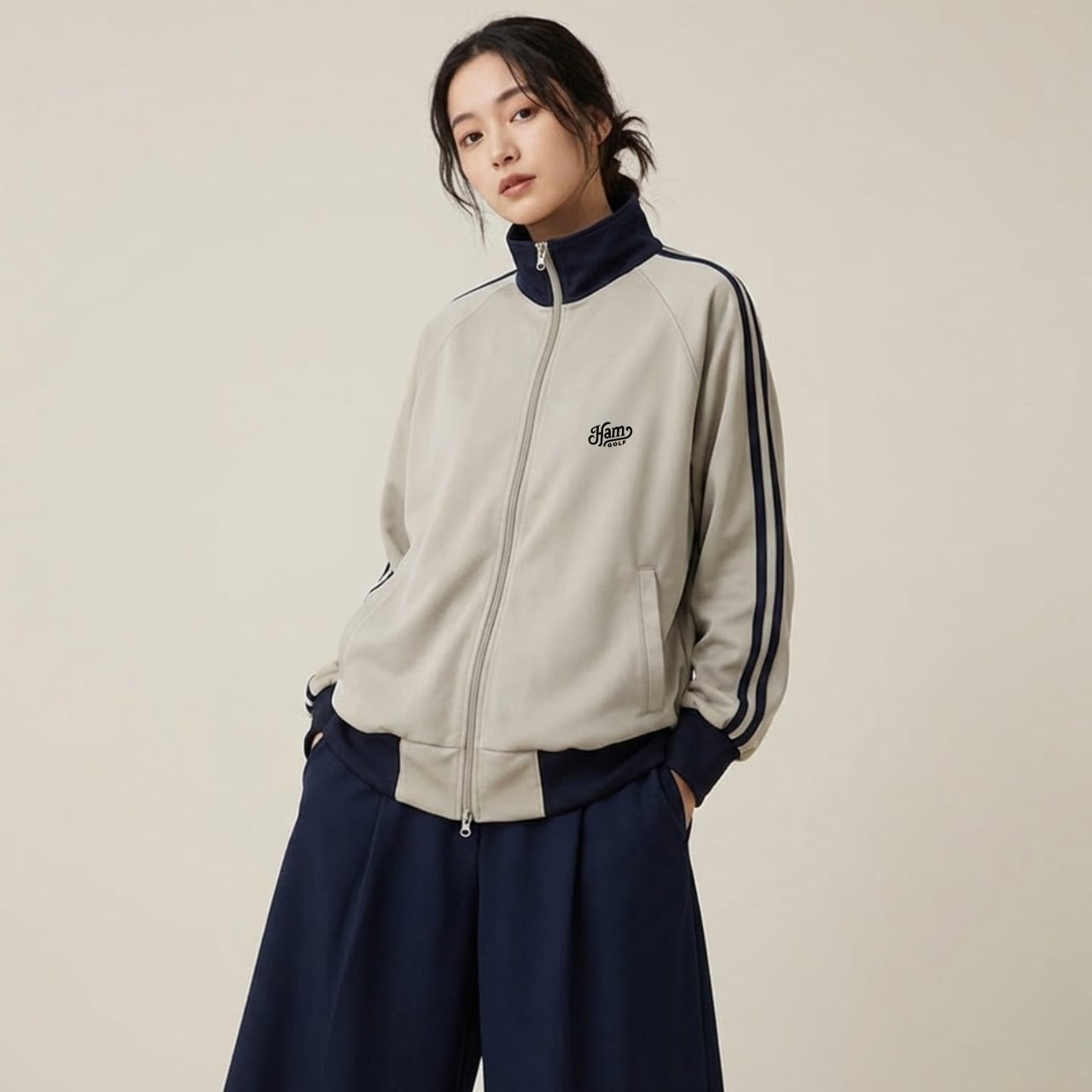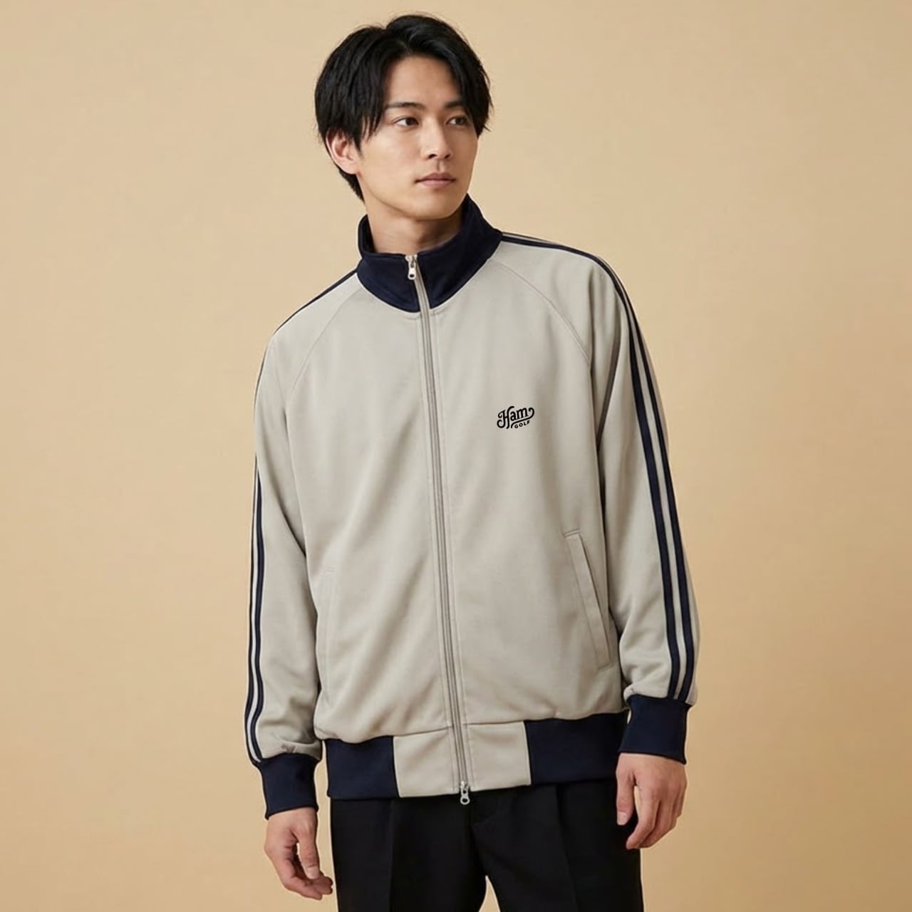 「THE STACK」シリーズに、待望のトラックジャケットがラインナップ。 左胸にはワンポイントロゴのみでシンプルかつ上品に仕上げ、洗練されたスポーティさを演出。一転して背面には、「HAMGOLF」のタイポグラフィをブロック状に積み上げた、シリーズ象徴のビッグロゴを大胆に配置しました。 フェアウェイを歩く後ろ姿や、スイングのフィニッシュで、確かな存在感を放つ一着です。 なめらかな肌触りと適度な伸縮性が魅力の7.0oz(オンス)スムース素材を採用。 肩の動きを妨げないラグランスリーブ仕様により、スムーズなスイングを実現します。また、ダブルファスナー仕様のため、プレー中のシルエット調整や、体温調節もスムーズに行えます。 ゴルフ場でのプレーはもちろん、練習場への行き帰りやタウンユースまで、シーズンを問わずスマートに着こなせるマストバイアイテムです。 ■カラー/サイズ ・カラー:グレー ・サイズ:S、M、L、LL ■寸法一覧(単位:cm) S 身丈60 身幅52 裄丈80 M 身丈64 身幅57 裄丈84 L 身丈68 身幅62 裄丈87 LL 身丈71 身幅68 裄丈90 ■素材 ポリエステル 100% スムース ※ファスナーはダブルスライダーです。 ■注意事項 ・商品画像は実際の商品と若干異なる場合がありますのでご注意ください。 ・商品お届けまでに約10営業日前後かかります。