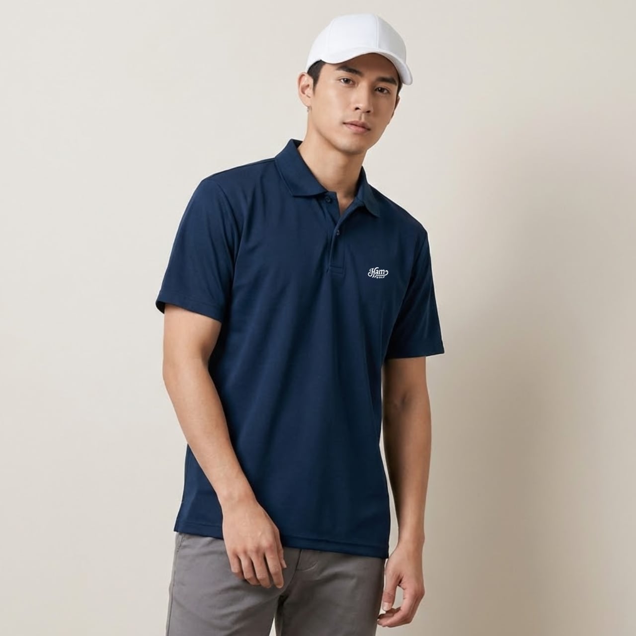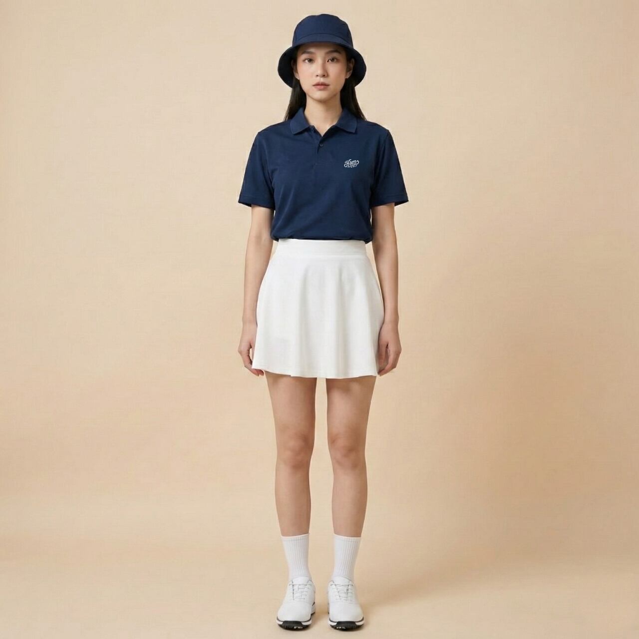 アフロヘアのキャラクター“ベン”を主役にした【AFLO】シリーズに、待望のポロシャツがラインナップ。 シモンズの仲間であり、枠にとらわれない自由なプレースタイルを持つ彼が、今度は夏のコースを舞台に躍動します。 左胸には控えめなワンポイントロゴを、背面にはインパクト抜群の「AFLO」グラフィックを配置。ストリートの遊び心と、ゴルフのマナーが共存するHamGOLFらしい仕上がりです。 生地には吸汗速乾性に優れたドライ素材を採用。 汗ばむ季節でもサラリとした肌触りをキープし、ベンのように“涼しい顔”でプレーに集中できる快適な一着です。 ※本商品はユニセックス仕様で、前合わせはボタンが右側になっております。 ■カラー/サイズ ・カラー:ネイビー ・サイズ:S、M、L、LL ■寸法一覧(単位:cm) S 肩幅44 身幅47 着丈65 袖丈20 M 肩幅46 身幅50 着丈68 袖丈21 L 肩幅48 身幅53 着丈71 袖丈22 LL 肩幅50 身幅56 着丈74 袖丈23 ■素材 ポリエステル100% ■注意事項 ・商品画像は実際の商品と若干異なる場合がありますのでご注意ください。 ・商品お届けまでに約10営業日前後かかります。