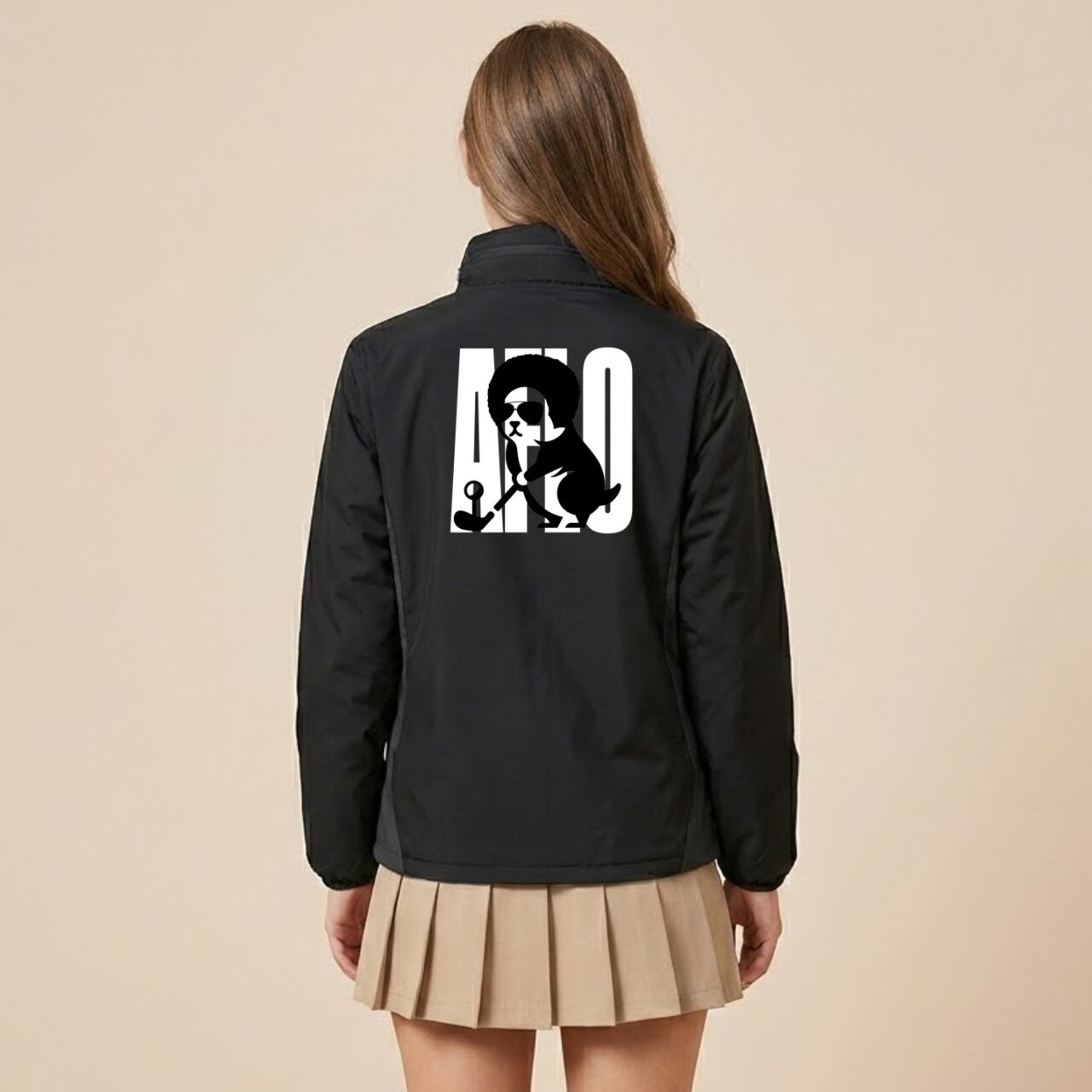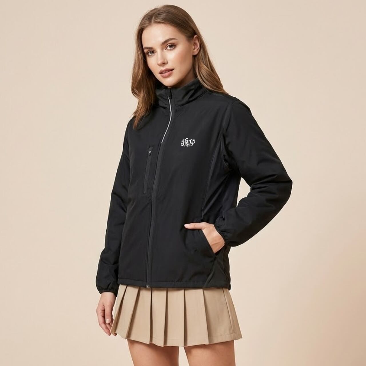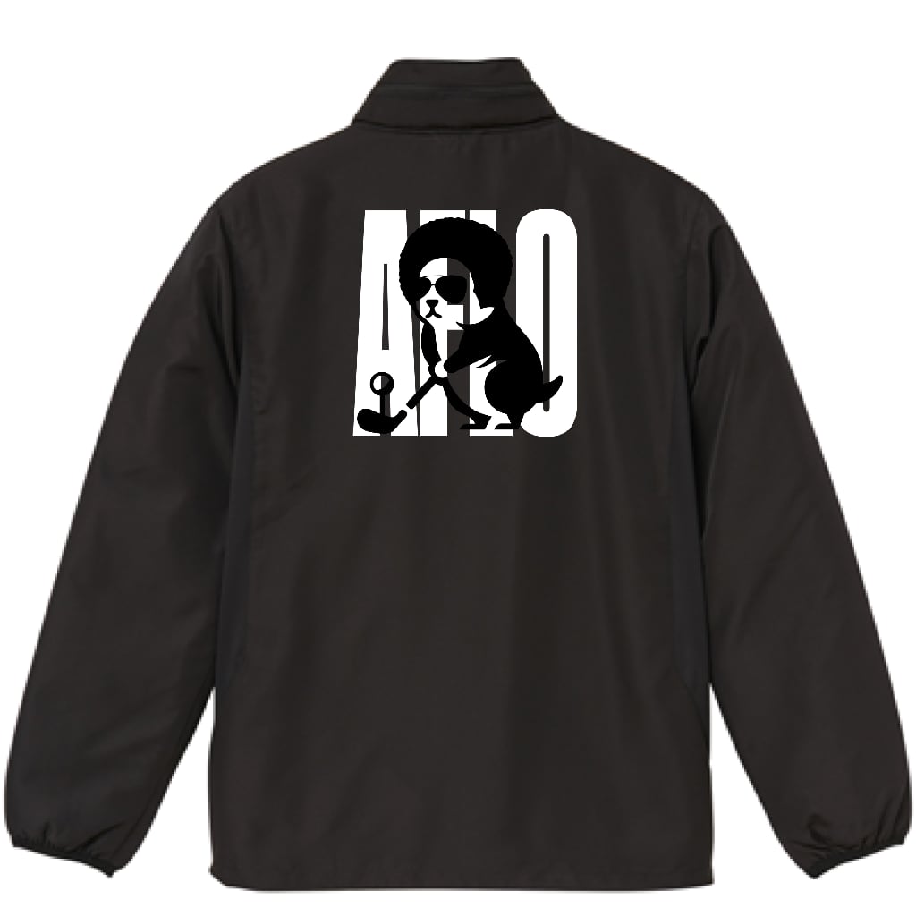 【AFLO】シリーズにフリース裏地のブルゾンが登場 シモンズの仲間として登場したベンは、風を感じるような軽やかさと自由なプレースタイルが持ち味。 背中の「AFLO」ロゴとベンのグラフィックが調和し、HamGOLFの“遊び”と“規律”が共存する異質な世界観を映し出します。 軽やかさと暖かさを兼ね備えた、フード付き裏フリースブルゾン。 表地にはマイクロリップストップ素材を採用し、軽量でありながら撥水・防風性に優れた仕上がり。 裏地はしっかりとしたフリース素材で、保温性を確保しながらも動きやすさを追求。 さらに襟元には収納式の“フードイン仕様”を備え、天候の変化にもスマートに対応します。 ラウンド中や練習はもちろん、街でも個性を放つ一着。 ⸻ ■カラー/サイズ ・カラー:ブラック ・サイズ:S、M、L、XL ■寸法一覧(単位:cm) S 着丈66 身幅53 肩幅45 袖丈63 M 着丈69 身幅56 肩幅47 袖丈64 L 着丈72 身幅59 肩幅49 袖丈64 XL 着丈75 身幅62 肩幅51 袖丈65 ■素材 表地:ポリエステル100%(マイクロリップストップ) 表面:フッ素系撥水 / 裏面:アクリルコーティング 裏地(胴):ポリエステル100%(フリース) 裏地(袖):ポリエステル100%(タフタ) 脇下:ポリエステル100%(ラミネート加工ストレッチリブ) ■注意事項 ・商品画像は実際の商品と若干異なる場合があります。 ・お届けまでに約10営業日前後かかります。 風を纏い、自由にプレーせよ。— Feel the flow, play your rhythm.