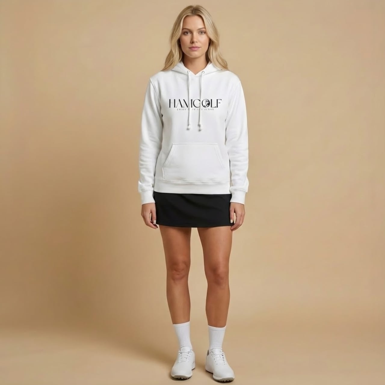 【ENJOY OVER THE SCORE】 ふかふかで保温性の高い裏起毛を使用したフード付きパーカー。 T/C(綿×ポリエステル)の生地を使用しているので、軽くて丈夫なのも嬉しいポイントです。 家族や友人とお揃いで「Enjoy Golf」はいかがでしょうか。 ■カラー/サイズ ・カラー:ホワイト ・サイズ:S、M、L、XL ■モデル/着用サイズ 男性:173cm / Lサイズ 女性:165cm / Sサイズ サイズ一覧(単位:cm) S 肩幅44 身幅52 身丈63 袖丈57 M 肩幅48 身幅55 身丈67 袖丈60 L 肩幅52 身幅58 身丈71 袖丈61 XL 肩幅55 身幅63 身丈76 袖丈62 ■素材 綿52% ポリエステル48% 10oz(表面:綿100%) ■注意事項 ・商品画像は実際の商品と若干異なる場合がありますのでご注意ください。 ・商品お届けまでに約10営業日前後かかります。