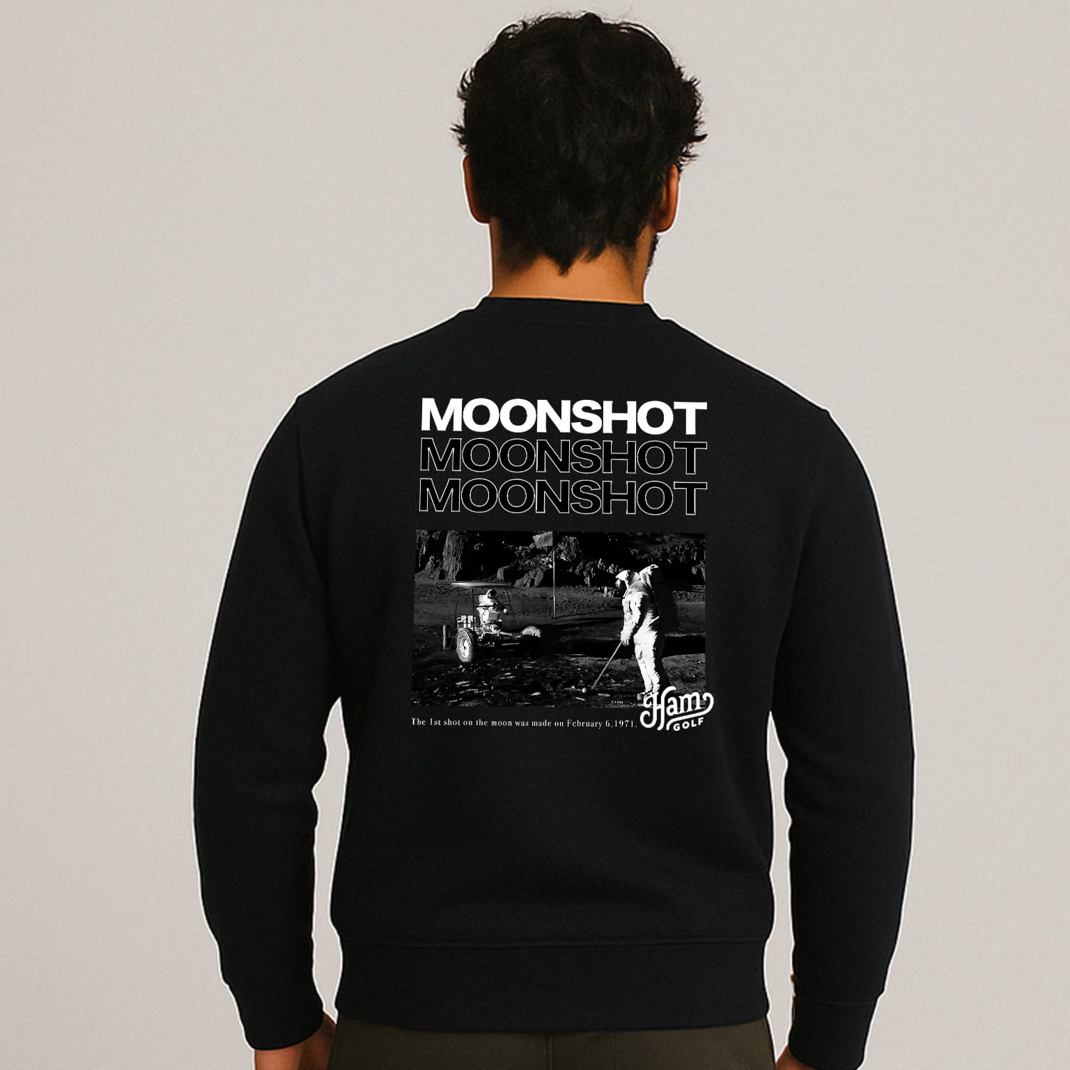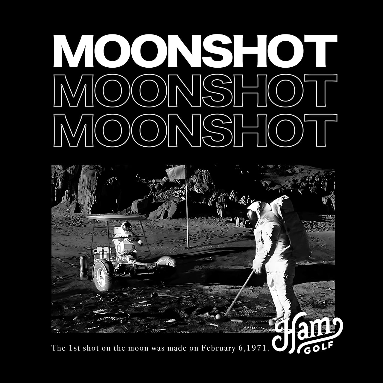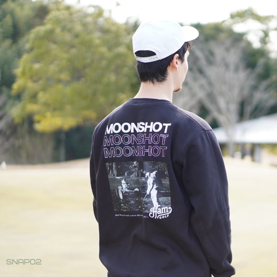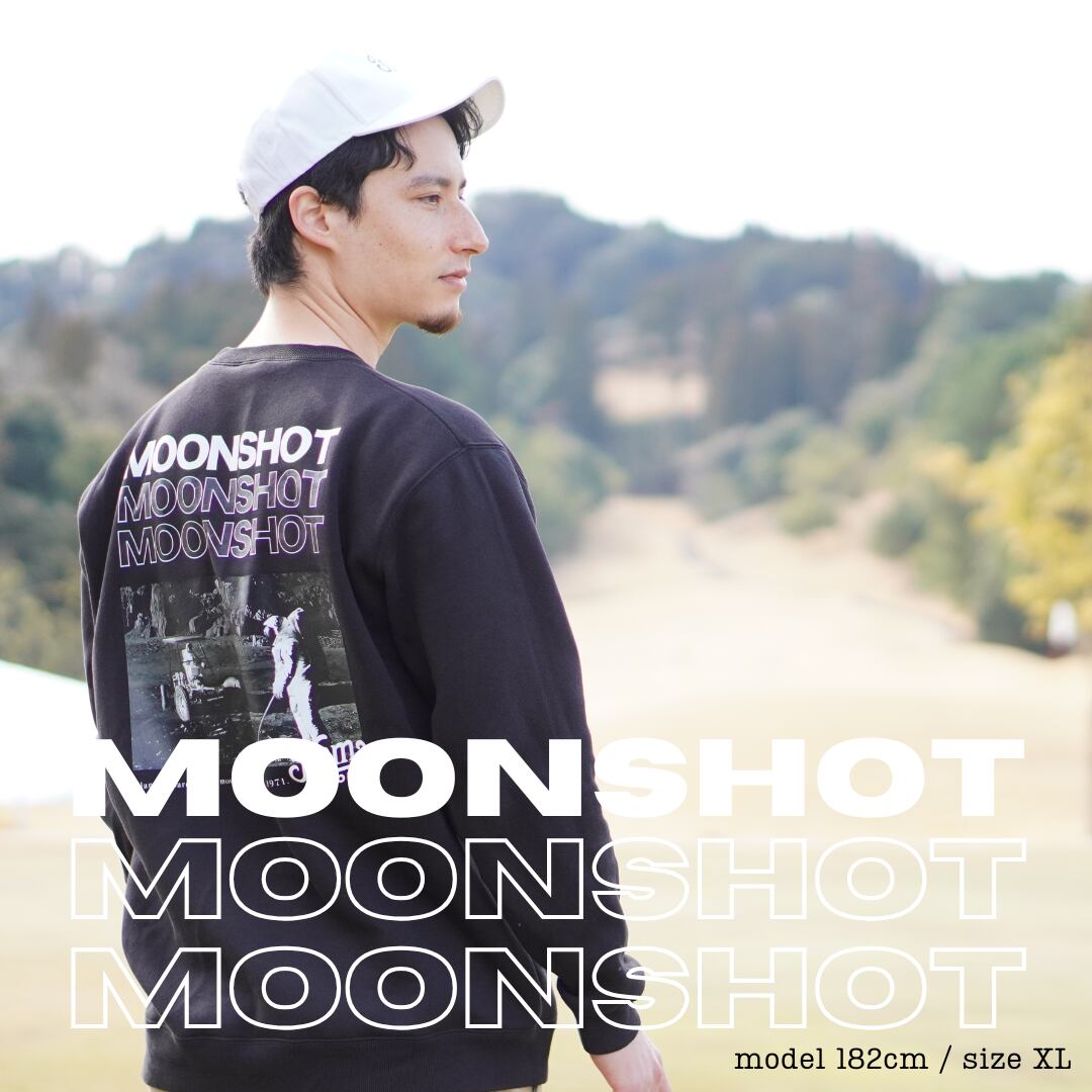 1971年2月6日、アラン・シェパードが月面でゴルフボールを打った歴史的な瞬間をモチーフにした【MOON SHOT】。バックにはその象徴的なシーンが描かれており、着る人の遊び心と好奇心、あくなき挑戦心をさりげなく表現します。