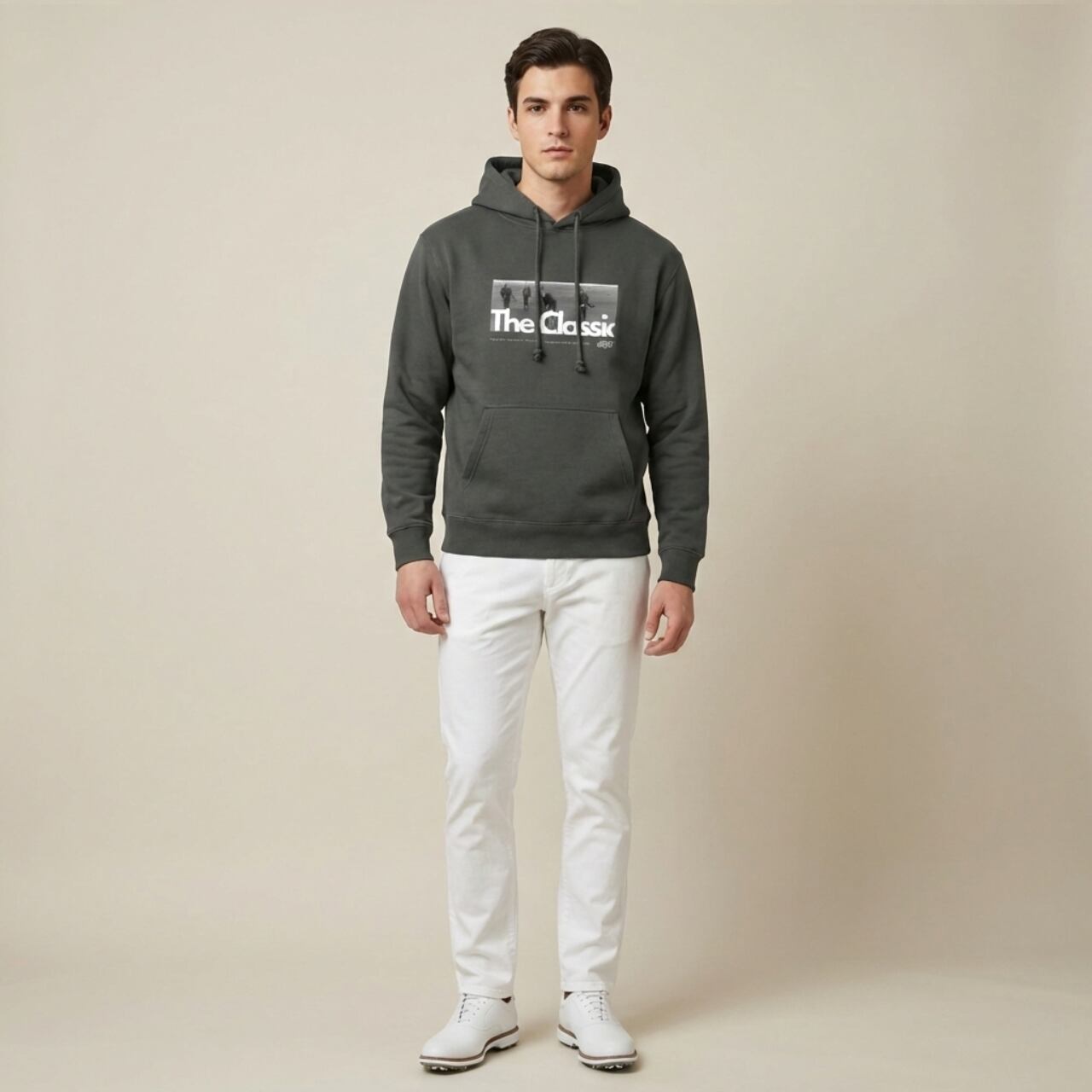 「The Classic」は、ゴルフの歴史とその精神を称えるアイテム。アメリカでゴルフが生まれた時代のエピソードにインスパイアされ、モダンなデザインでその魅力を再解釈しました。フロントには力強いタイポグラフィとヴィンテージ調の写真を組み合わせ、伝統とスタイルが共存するデザインに仕上げています。 柔らかな裏起毛素材を採用しており、寒い季節でも快適に過ごせる保温性が特徴です。ゴルフ場でのラウンドや日常のカジュアルシーンに溶け込みながらも、着る人に特別感を与える一着です。 ■カラー/サイズ カラー:ダークグレー サイズ:S、M、L、XL ■モデル/着用サイズ 男性:176cm / Lサイズ 女性:168cm / Mサイズ ■寸法一覧(単位:cm) S 肩幅44 身幅52 身丈63 袖丈57 M 肩幅48 身幅55 身丈67 袖丈60 L 肩幅52 身幅58 身丈71 袖丈61 XL 肩幅55 身幅63 身丈76 袖丈62 ■素材 綿52% ポリエステル48% 10oz(表面:綿100%) ■注意事項 ・商品画像は実際の商品と若干異なる場合がありますのでご了承ください。 ・商品お届けまでに約10営業日前後かかります。 ゴルフの歴史と遊び心を日常に取り入れたいあなたへ。「The Classic」で、特別なひとときを感じてください。