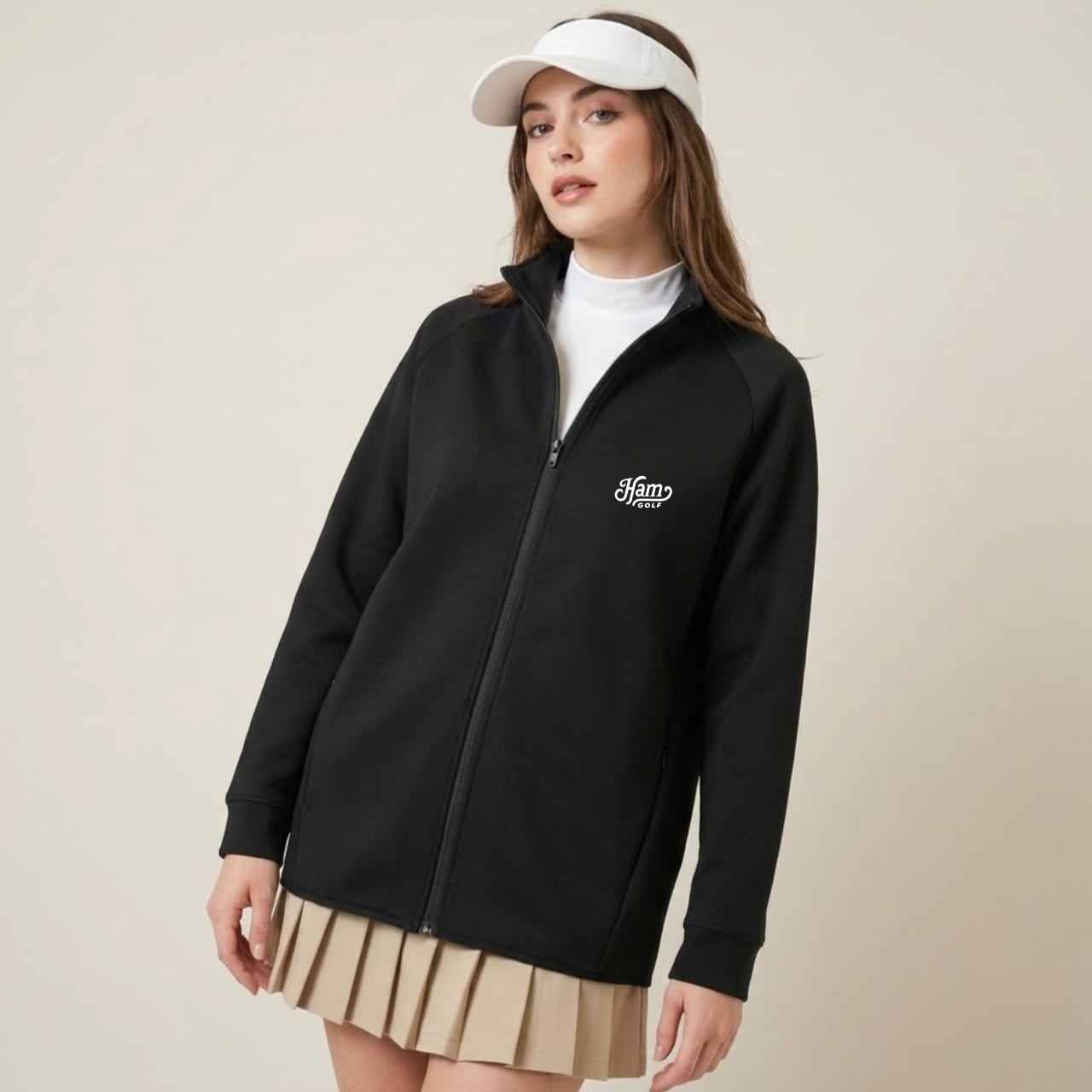 HamGOLFのキャラクター【シモンズ】とその仲間たちが描かれた「3Brothers」シリーズのBlouson。 軽量かつストレッチ性の高いダンボールニット素材を採用し、ラウンド中の動きやすさをサポートします。単体での着用はもちろん、ポロシャツやモックネックとのレイヤードスタイルにもぴったり。保温性と通気性のバランスに優れた一着で、秋冬のゴルフライフを快適に彩ります。 ■カラー/サイズ ・カラー:ブラック ・サイズ:S、M、L、XL ■モデル/着用サイズ 男性:178cm / Lサイズ 女性:165cm / Mサイズ ■寸法一覧(単位:cm) S 身丈63.5 身幅51 裄丈67 M 身丈66.5 身幅54 裄丈69 L 身丈69.5 身幅57 裄丈71 XL 身丈72.5 身幅60 裄丈73 ■素材 ダンボールニット(ポリエステル70%、レーヨン25%、ポリウレタン5%) ■注意事項 ・商品画像は実際の商品と若干異なる場合がありますのでご了承ください。 ・商品お届けまでに約10営業日前後かかります。 キャラクターの個性が光る「3Brothers」シリーズのBlousonを羽織って、秋冬のラウンドをもっと楽しく、そしてベストスコアを目指しましょう。