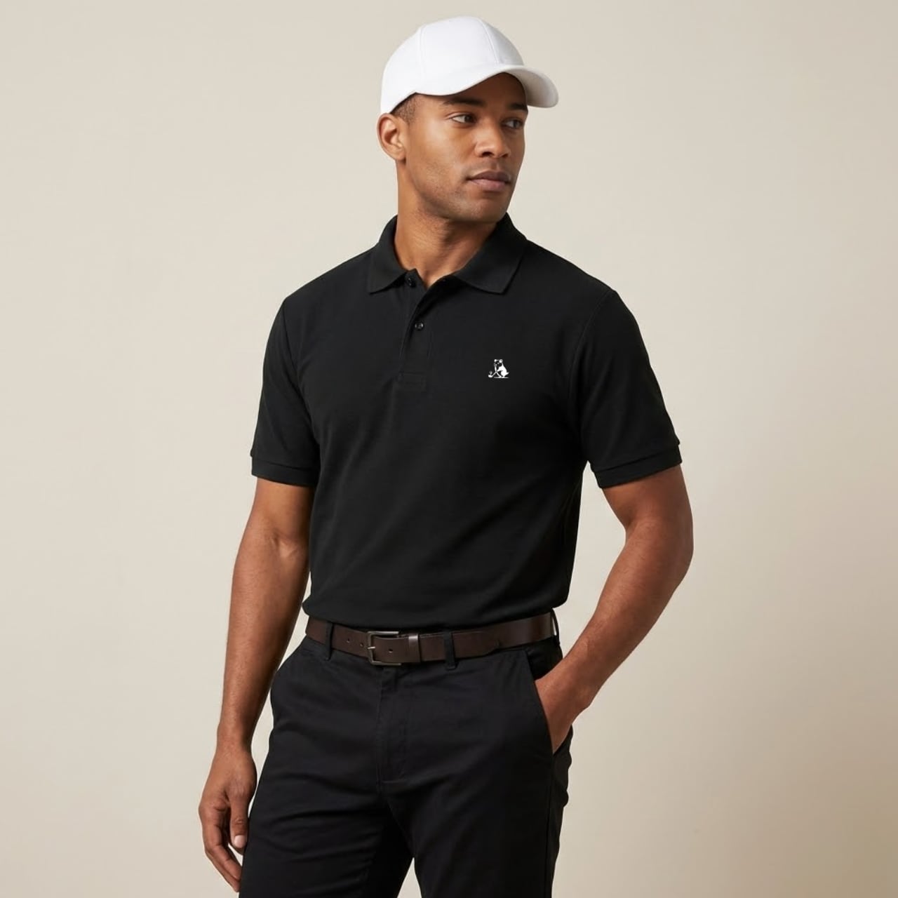 綿とポリエステル配合のCVC鹿の子生地を使用した「BASIC POLO」は、通気性と快適さを兼ね備えた、着心地の良いゴルフポロシャツ。 シンプルな中にも、胸元のハムスターと襟下のロゴがさりげなく個性をプラスします。 タックイン/アウトどちらにも対応できるゆとりのあるシルエットで、ゴルフはもちろん、日常使いや旅行先でも活躍する万能な一枚です。 ※本商品はユニセックス仕様で、前合わせはボタンが右側になっております。 ■カラー / サイズ展開 ・カラー:ブラック ・サイズ:S、M、L、XL(ユニセックス) ■モデル/着用サイズ 男性:175cm / Lサイズ 女性:159cm / Sサイズ ■寸法一覧(単位:cm) S:身丈65/身幅47/肩幅41/袖丈22 M:身丈68/身幅51/肩幅44/袖丈23 L:身丈71/身幅54/肩幅47/袖丈23 XL:身丈75/身幅58/肩幅50/袖丈24 ■素材 綿60%、ポリエステル40%(30sコーマ糸 鹿の子) 肌触りが良く、洗濯しても型崩れしにくい丈夫な生地です。 ※詳しいお手入れ方法は、商品に付属の洗濯表示タグをご確認ください。 ■注意事項 ・商品画像は実際の商品と若干異なる場合がありますのでご了承ください。 ・商品お届けまでに約10営業日前後かかります。